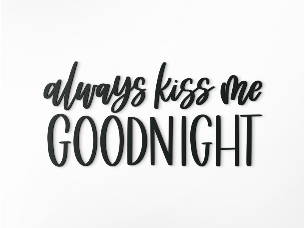 Verliebten Paaren wird empfohlen, niemals im Streit schlafen zu gehen. Das romantische Zitat Always kiss me goodnight wird Sie jeden Abend sanft daran erinnern. Der ideale Platz dafür wird also die Schlafzimmerwand sein, wobei die Aufschrift am besten über dem Bett zur Geltung kommt. Zur Auswahl stehen 3 Größen und 8 Holzdekore.