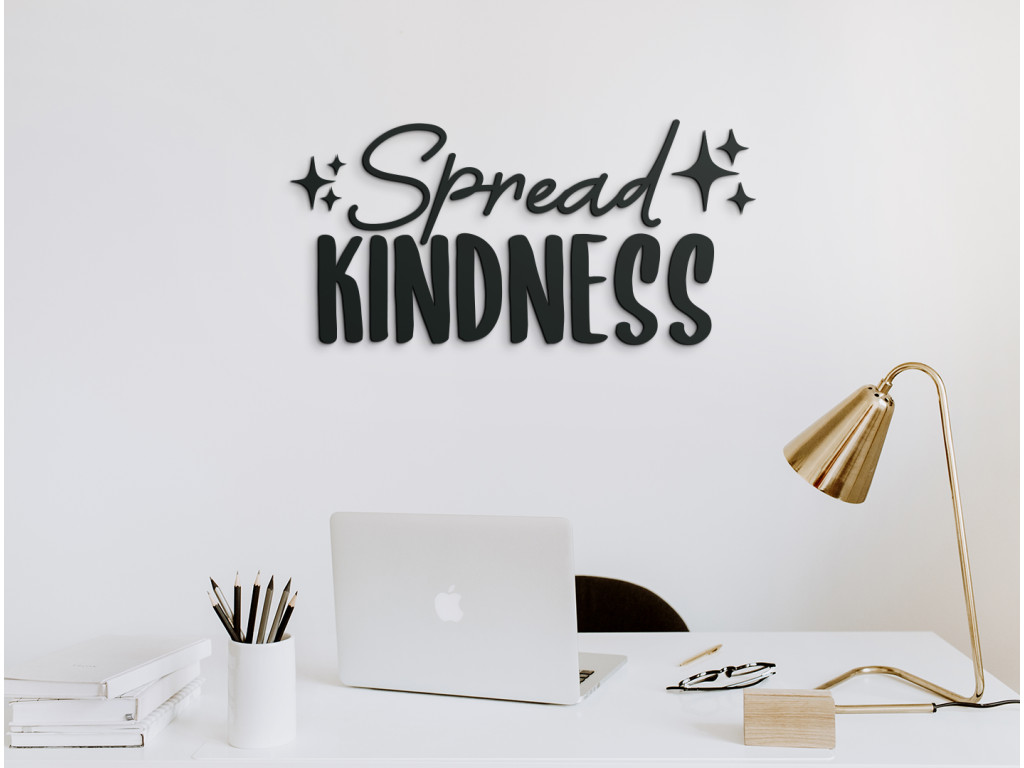 Der Holzsticker, der auf Englisch zur Verbreitung von Liebenswürdigkeit auffordert, wird jeden bei seinem Anblick an diese wichtige Botschaft erinnern. Er verbreitet damit eine positive Stimmung unter Familienmitgliedern, Kindern in der Schule, aber auch unter den Kollegen im Büro. Sie können ihn in 3 verfügbaren Größen und 8 Farben an einer gut sichtbaren Stelle platzieren.