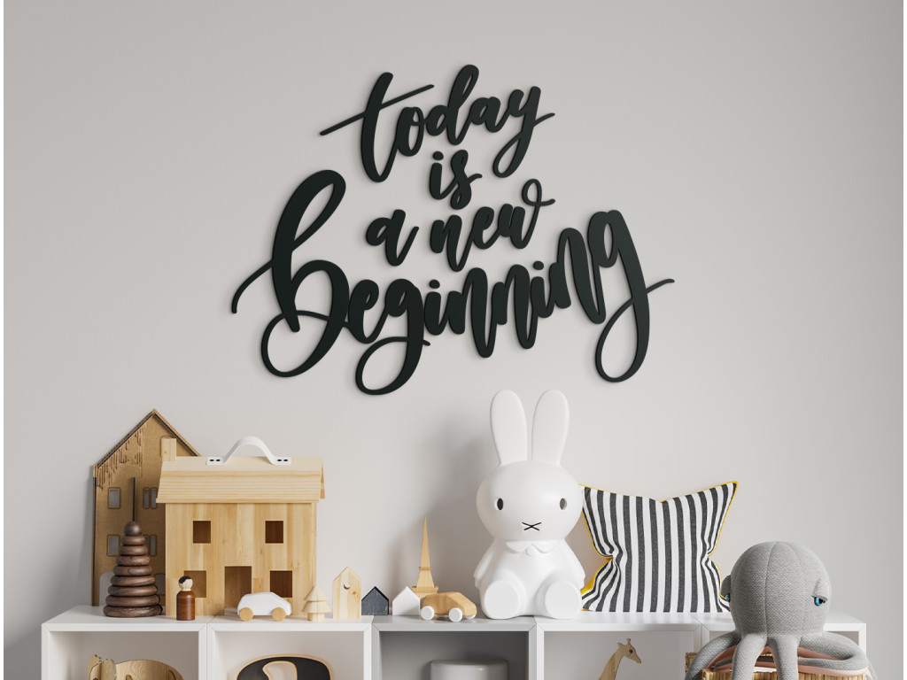 Die hölzerne Wanddekoration Today is a new beginning ist eine Aufschrift, die Sie jeden Morgen wachrüttelt. Hängen Sie es an einer gut sichtbaren Stelle an der Wand auf, zum Beispiel über Ihrem Schreibtisch, damit Sie es immer im Blick haben. Es wird Sie unermüdlich daran erinnern, niemals aufzugeben.