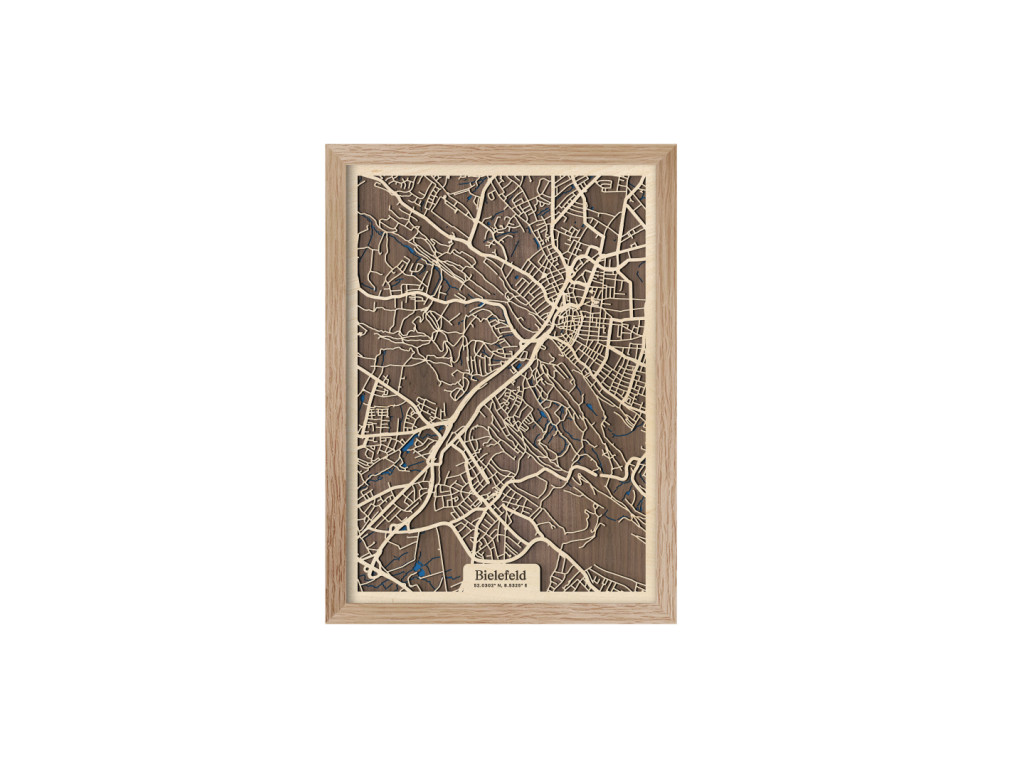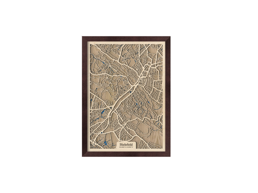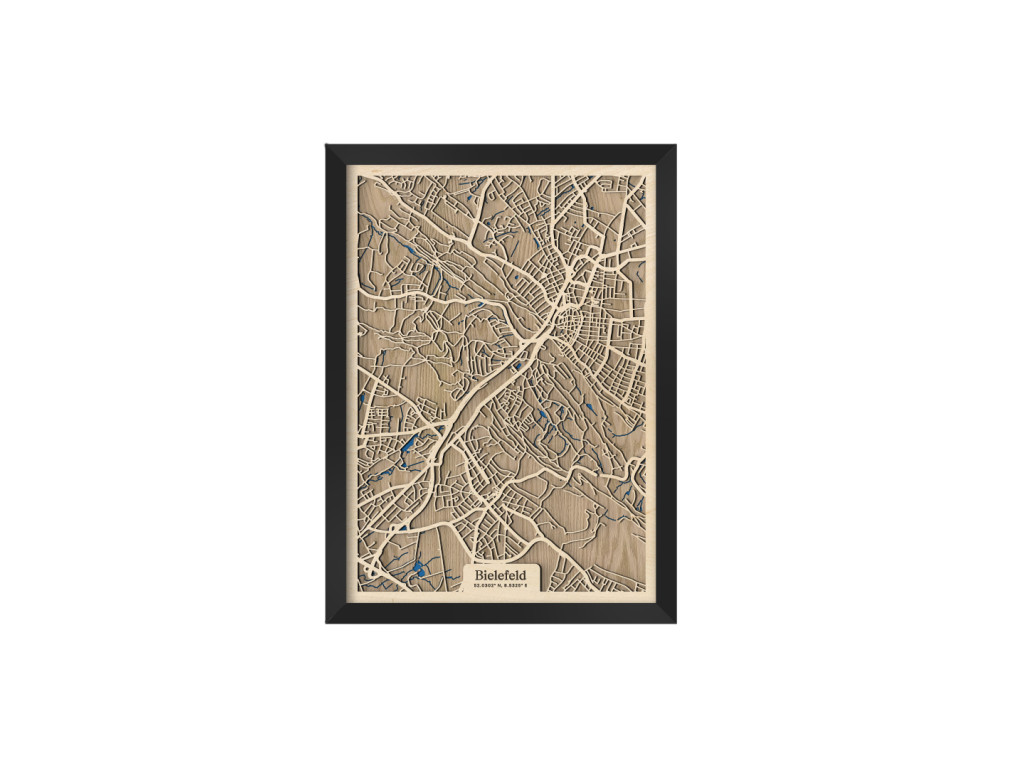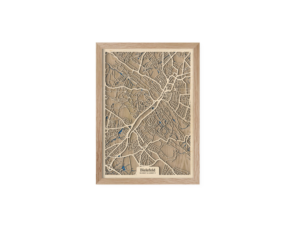 Wir präsentieren die nächste 3D-Karte aus der drevko CITY-Kollektion - Bielefeld, eine dynamische Stadt, umgeben von der Schönheit des Teutoburger Waldes. Wir haben dieses Juwel Nordrhein-Westfalens in einem detaillierten Holzdesign eingefangen, das die einzigartige Lage der verstreuten Infrastruktur hervorhebt. Gerne liefern wir Ihnen die Farbe und die Abmessungen gemäß den unten stehenden Optionen, so dass Sie als Beweis für die Existenz immer ein Stück Bielefeld in Reichweite haben, ganz bequem in Ihrem eigenen Zuhause.