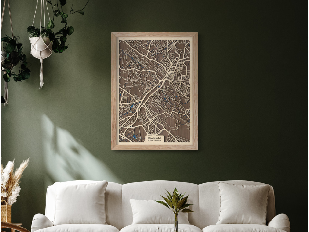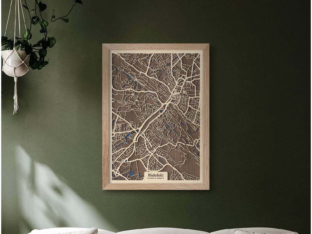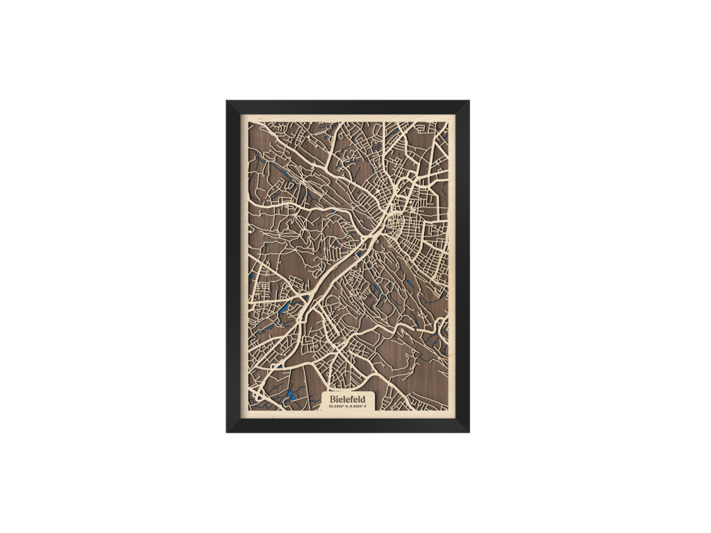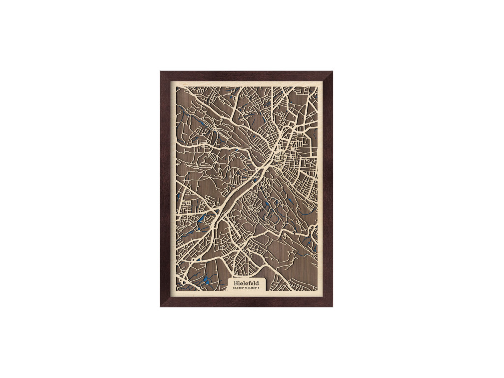 Wir präsentieren die nächste 3D-Karte aus der drevko CITY-Kollektion - Bielefeld, eine dynamische Stadt, umgeben von der Schönheit des Teutoburger Waldes. Wir haben dieses Juwel Nordrhein-Westfalens in einem detaillierten Holzdesign eingefangen, das die einzigartige Lage der verstreuten Infrastruktur hervorhebt. Gerne liefern wir Ihnen die Farbe und die Abmessungen gemäß den unten stehenden Optionen, so dass Sie als Beweis für die Existenz immer ein Stück Bielefeld in Reichweite haben, ganz bequem in Ihrem eigenen Zuhause.