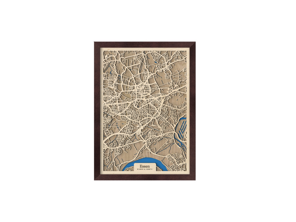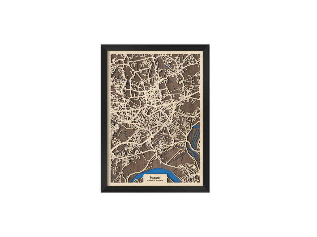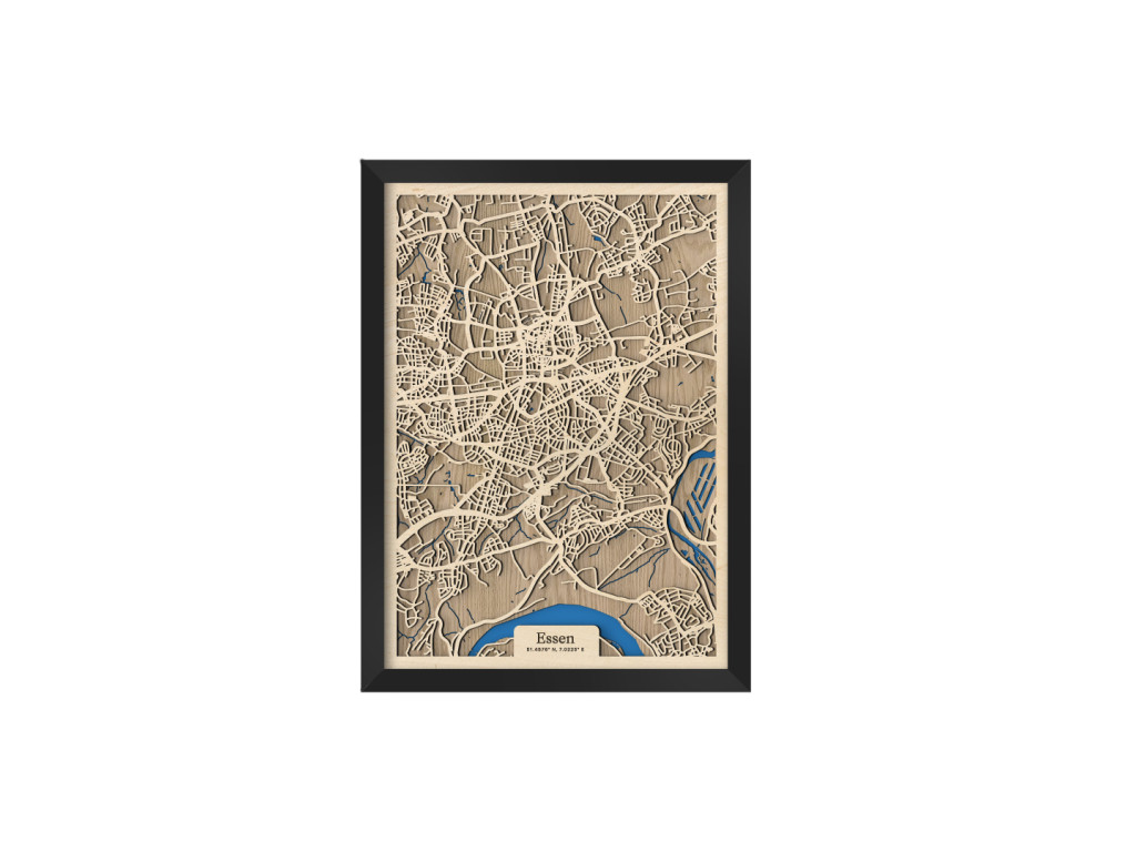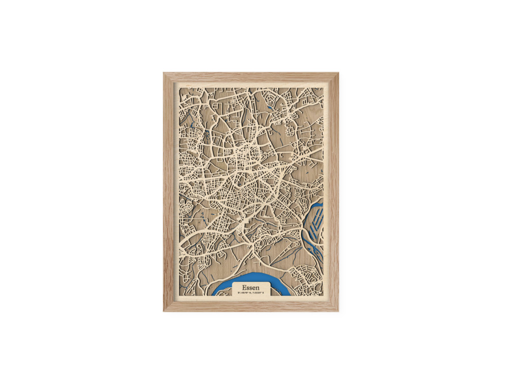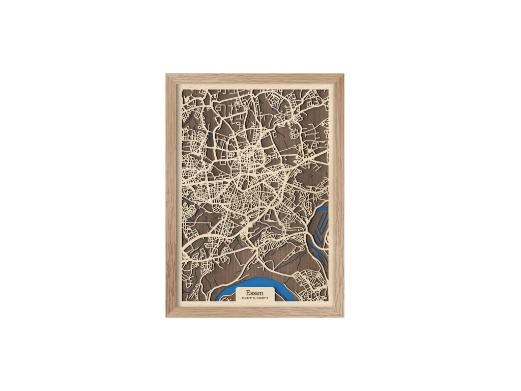 Für die Kollektion drevko CITY haben wir ein weiteres Stück angefertigt - einen 3D-Stadtplan von Essen, dem industriellen und kulturellen Zentrum des Ruhrgebiets. In unserem detaillierten Plan werden die charakteristischen Straßen zum Leben erweckt, einschließlich des Baldeneysees, des größten Ruhrstausess. Wir passen die Farben und Größe der Karte gerne an, damit Sie Essen auch in Ihren eigenen vier Wänden genießen können.