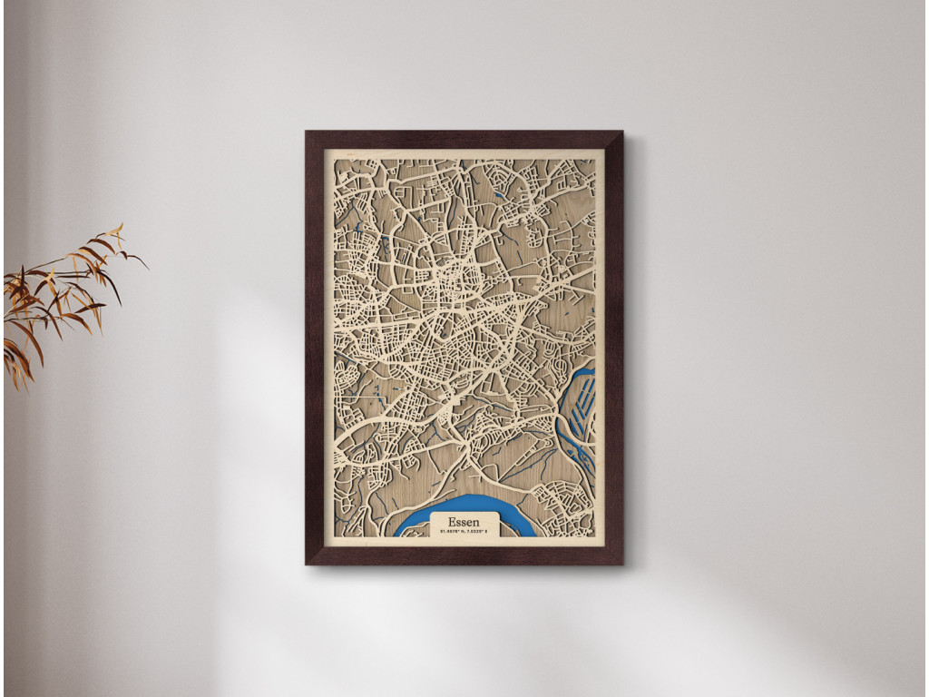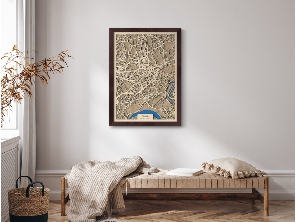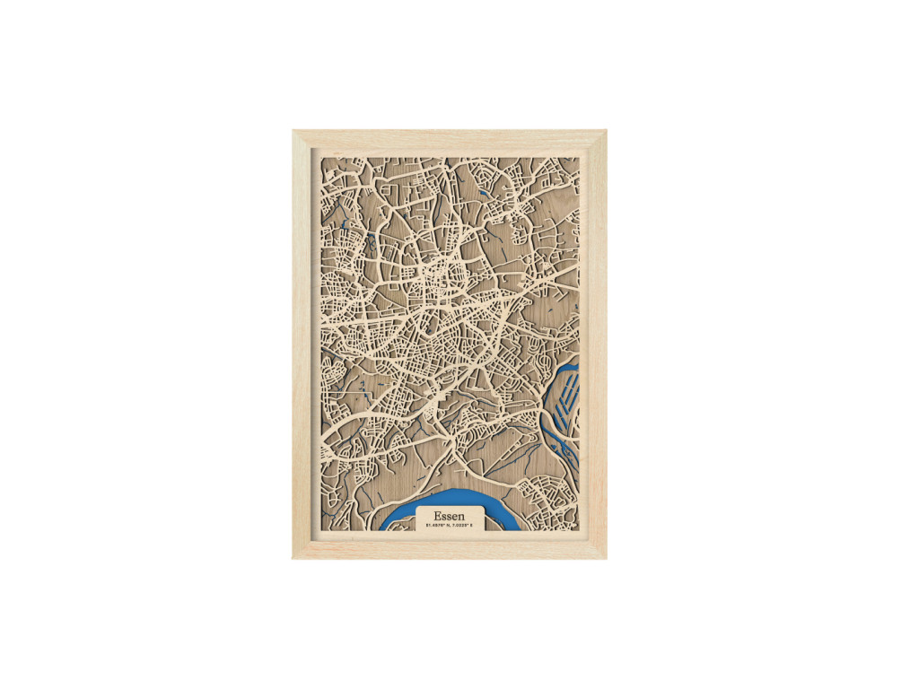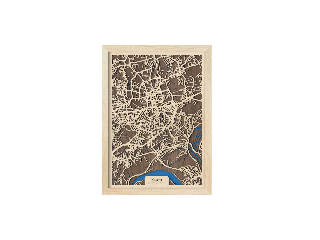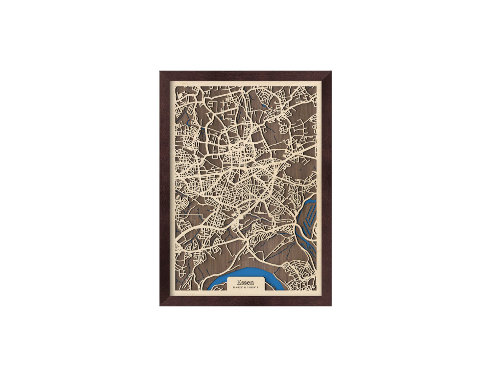 Für die Kollektion drevko CITY haben wir ein weiteres Stück angefertigt - einen 3D-Stadtplan von Essen, dem industriellen und kulturellen Zentrum des Ruhrgebiets. In unserem detaillierten Plan werden die charakteristischen Straßen zum Leben erweckt, einschließlich des Baldeneysees, des größten Ruhrstausess. Wir passen die Farben und Größe der Karte gerne an, damit Sie Essen auch in Ihren eigenen vier Wänden genießen können.