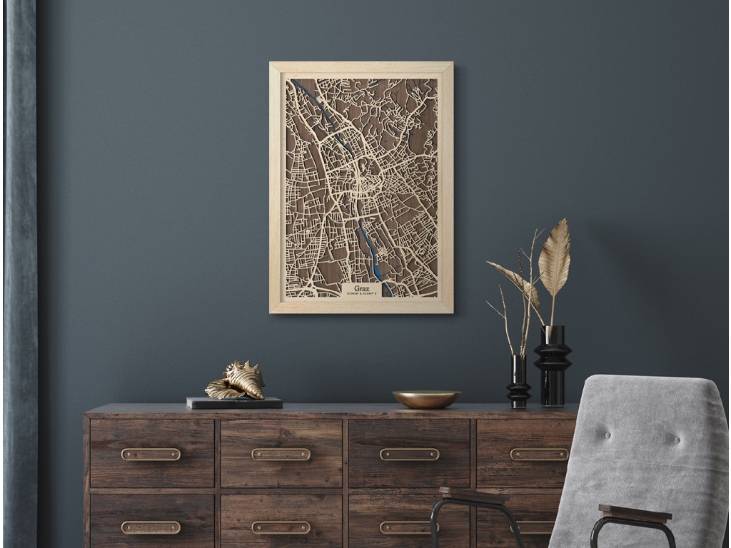 Graz, die Hauptstadt der Steiermark in Österreich, ist eine Stadt voller kultureller Vitalität und historischem Charme. Die Stadt erstreckt sich entlang des Flusses Mur, was zu ihrem malerischen Erscheinungsbild beiträgt. Die Stadt ist berühmt für ihre einzigartige Altstadt und das Wahrzeichen, den Uhrenturm auf dem Schlossberg, der die Stadt überragt. Unsere 3D-Karte ermöglicht es Ihnen, die verschiedenen Straßen zu erkunden, die den Charakter von Graz ausmachen. Mit einer Vielzahl von Farben und Größen können Sie das perfekte Objekt aus der Kollektion drevko CITY für Ihr Zuhause auswählen.