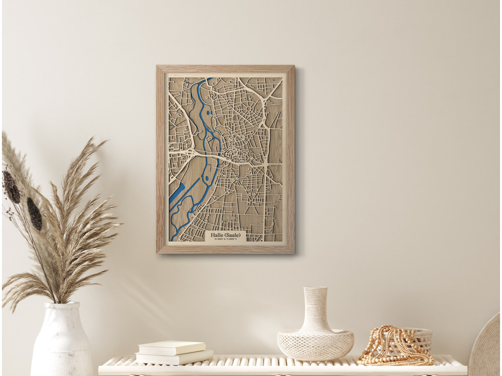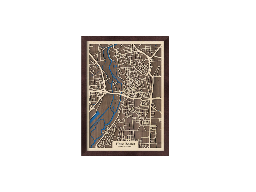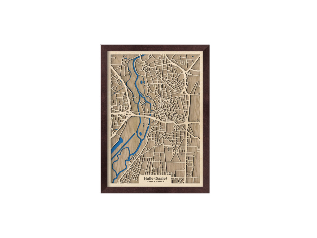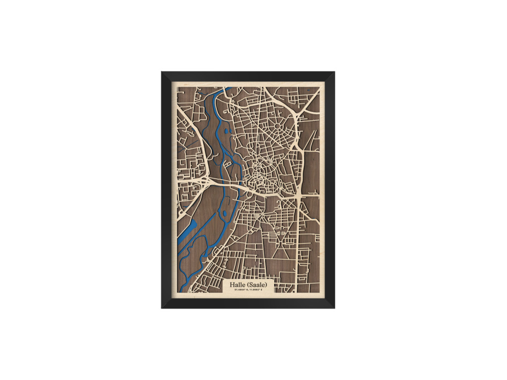 Tauchen Sie ein in die zauberhafte Umgebung von Halle (Saale), gelegen in Sachsen-Anhalt, Deutschland. Der Stadtplan aus der Kollektion drevko CITY zeigt die Straßen, Wege und Wasserwege, wie die Saale, die den Charakter der Stadt prägen. Mit viel Liebe zum Detail vermittelt dieses Bild eine authentische Atmosphäre und besticht gleichzeitig durch sein modernes Design, das in verschiedenen Farbvarianten und zwei Größen erhältlich ist, die Sie über die unten stehenden Filter auswählen können.