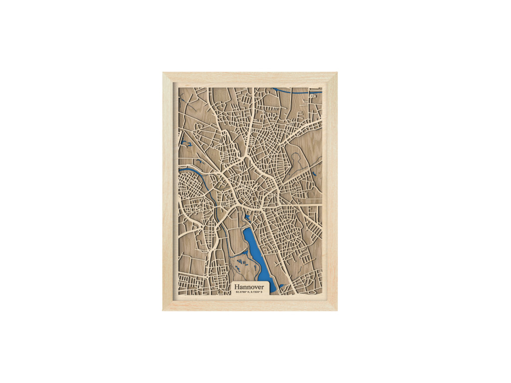 Aus der Kollektion drevko CITY bringen wir Ihnen ein weiteres Schmuckstück - eine 3D-Karte von Hannover, der Hauptstadt Niedersachsens. Diese deutsche Stadt an der Leine ist weltberühmt für ihr modernes Messegelände und den barocken Charme ihrer königlichen Gärten. Deshalb präsentieren wir Ihnen diese detailgetreue Holzversion in einer Kombination aus natürlichen Dekorfarben und dem satten Blau, das die Wasserstraßen repräsentiert. Gerne passen wir die Karte in Farbe und Größe für Sie an, so dass Sie sich ein Stück Hannover direkt nach Hause holen können.