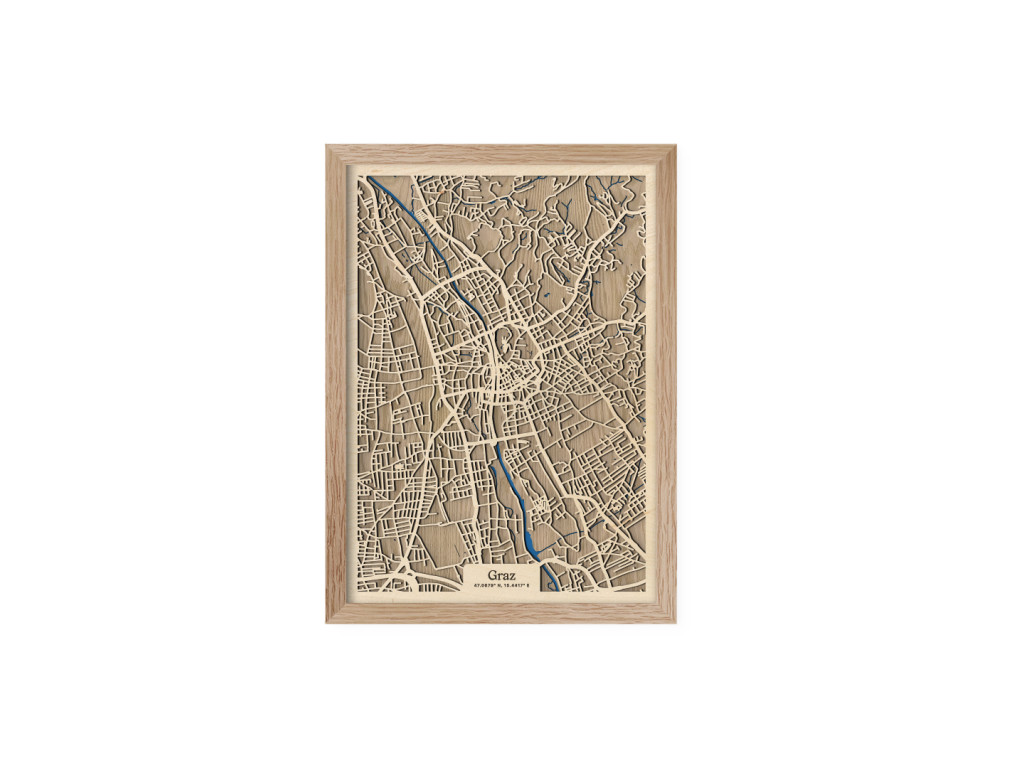 Die präzise Darstellung des Gewirrs aus Straßen, Wegen und Wasserstraßen schafft ein authentisches Porträt von Linz, das durch unsere 3D-Karte aus der Kollektion drevko CITY zum Leben erweckt wird. Dieses dekorative Wandbild bringt die Einzigartigkeit moderner Kunst in Ihre vier Wände und bietet zudem verschiedene Farboptionen und zwei Größen, aus denen Sie unten wählen können.