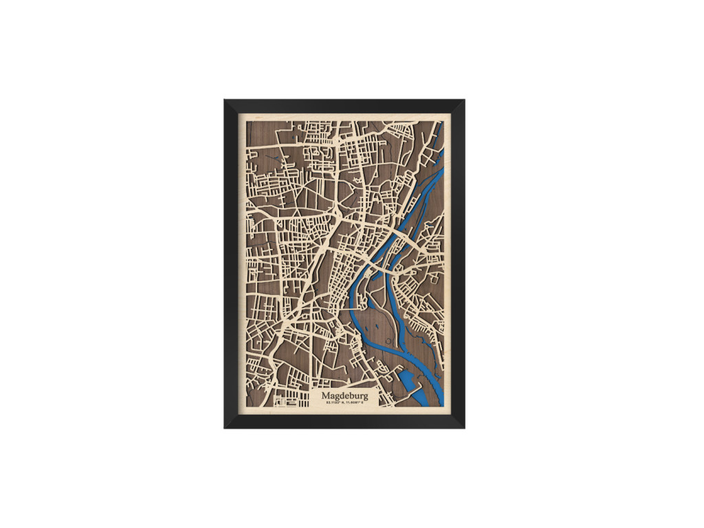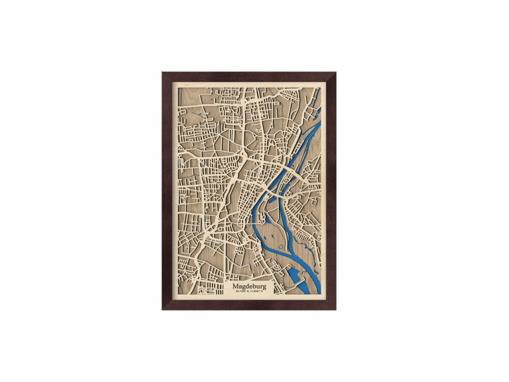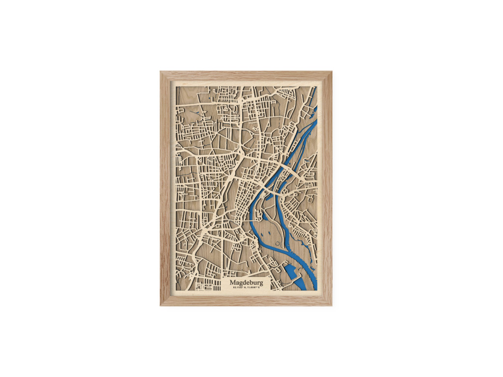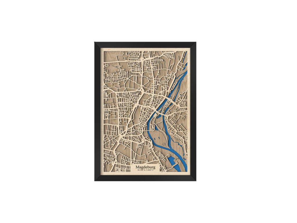 Magdeburg, die Landeshauptstadt von Sachsen-Anhalt , lockt Besucher mit ihrer reichen Geschichte und ihren Kulturschätzen. Die Stadt verfügt über malerische Straßen und historische Architektur und ist untrennbar mit der Elbe verbunden, was zu ihrem einzigartigen Charme beiträgt. Unsere 3D-Karte aus der Kollektion drevko CITY gibt die verschlungenen Straßen und Wasserwege, die das unverwechselbare Bild der Stadt prägen, originalgetreu wieder. Gönnen Sie sich dieses dekorative Teil, das die authentische Atmosphäre der Stadt direkt in Ihr Zuhause bringt. Wir bieten Ihnen mehrere Farboptionen und zwei Größen an, aus denen Sie mithilfe der unten stehenden Filter wählen können.