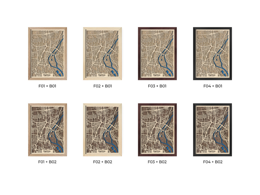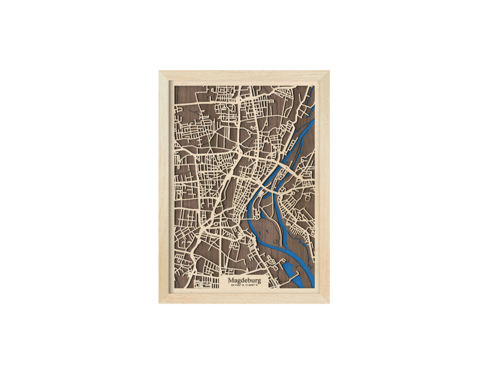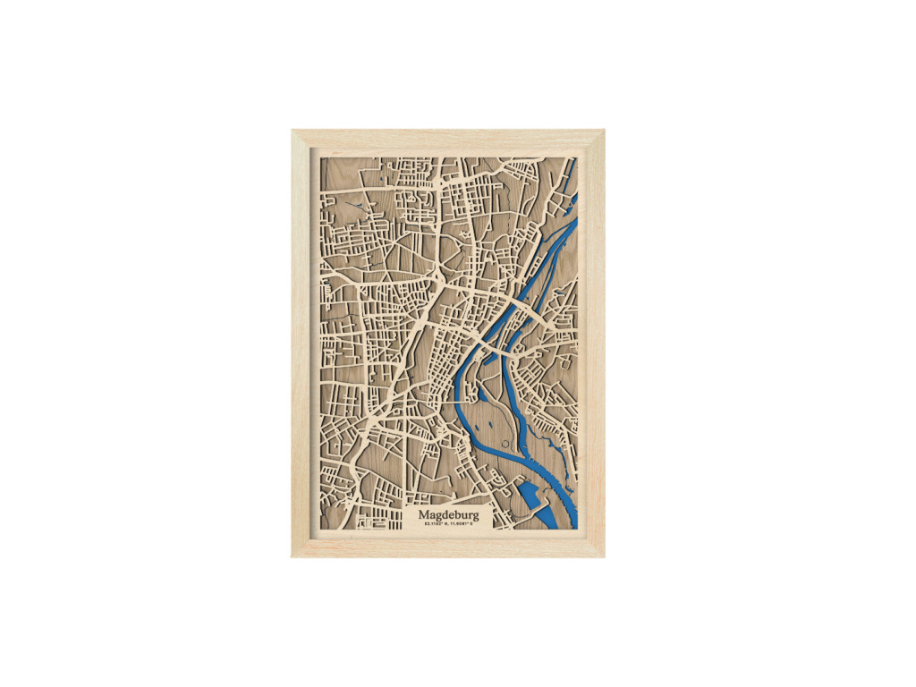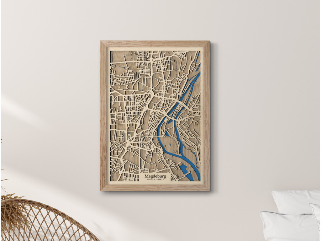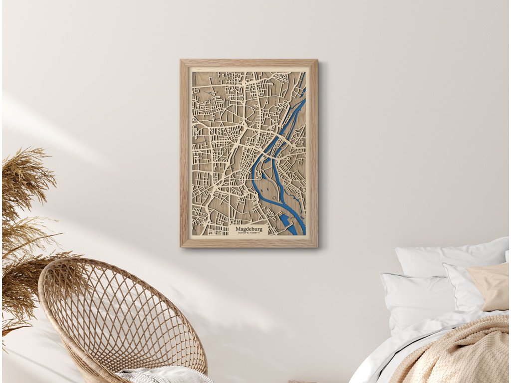 Magdeburg, die Landeshauptstadt von Sachsen-Anhalt , lockt Besucher mit ihrer reichen Geschichte und ihren Kulturschätzen. Die Stadt verfügt über malerische Straßen und historische Architektur und ist untrennbar mit der Elbe verbunden, was zu ihrem einzigartigen Charme beiträgt. Unsere 3D-Karte aus der Kollektion drevko CITY gibt die verschlungenen Straßen und Wasserwege, die das unverwechselbare Bild der Stadt prägen, originalgetreu wieder. Gönnen Sie sich dieses dekorative Teil, das die authentische Atmosphäre der Stadt direkt in Ihr Zuhause bringt. Wir bieten Ihnen mehrere Farboptionen und zwei Größen an, aus denen Sie mithilfe der unten stehenden Filter wählen können.
