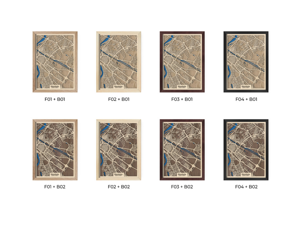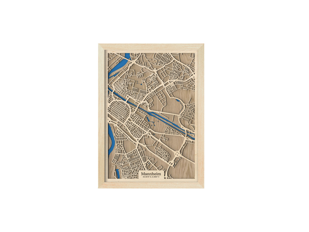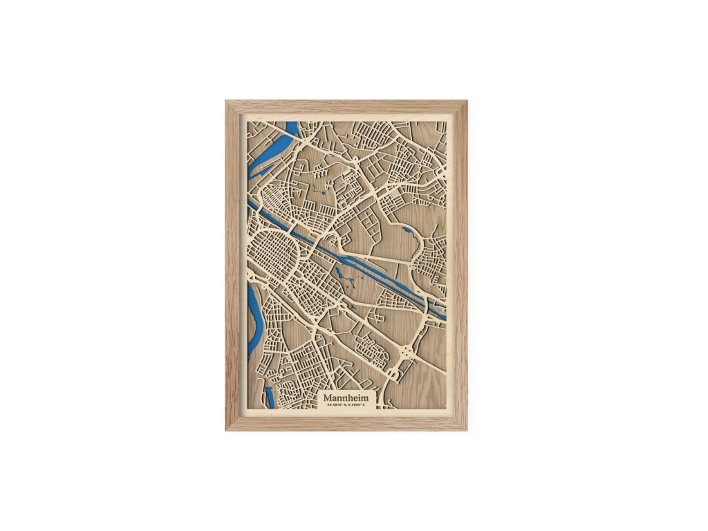 Lassen Sie sich nach Mannheim entführen - eine Stadt, die aufgrund ihres einzigartigen rechteckigen Straßenverlaufs den Beinamen „Quadratestadt“ trägt. In unserer neuen 3D-Karte aus der Kollektion drevko CITY fangen wir die unverwechselbare Geometrie der Straßen und die reichen Wasserwege dieser Metropole ein, in der Rhein und Neckar zusammenfließen. Wir bieten Ihnen eine Auswahl an Holzdekoren und zwei praktische Größen, damit Sie sich ein Stück Mannheim in Ihre eigenen vier Wände holen können - ganz nach Ihrem Geschmack.
