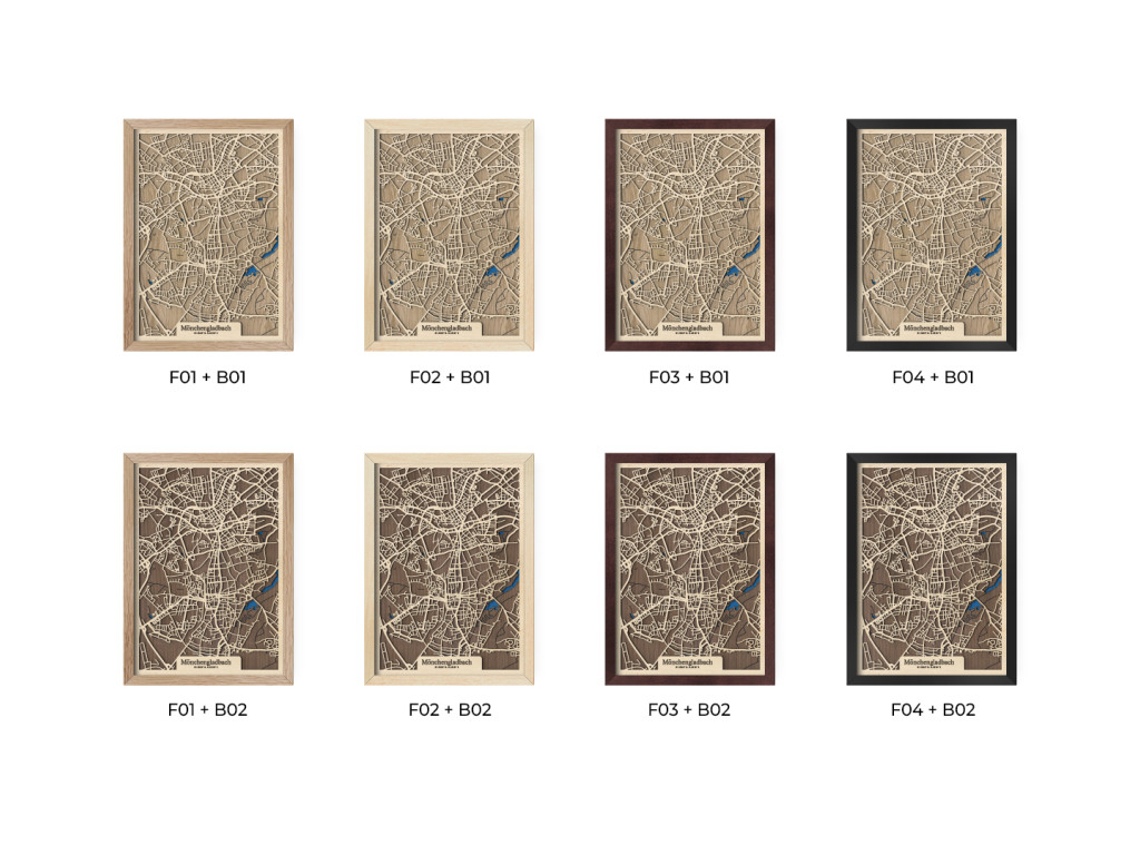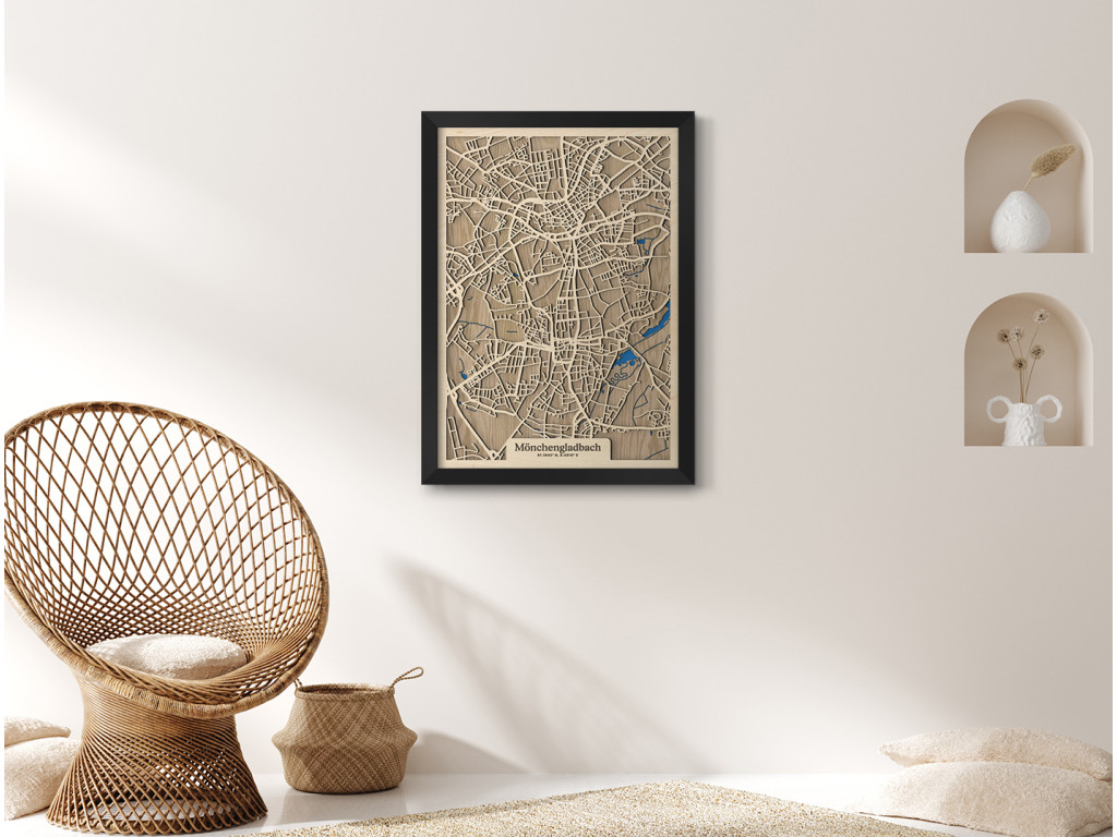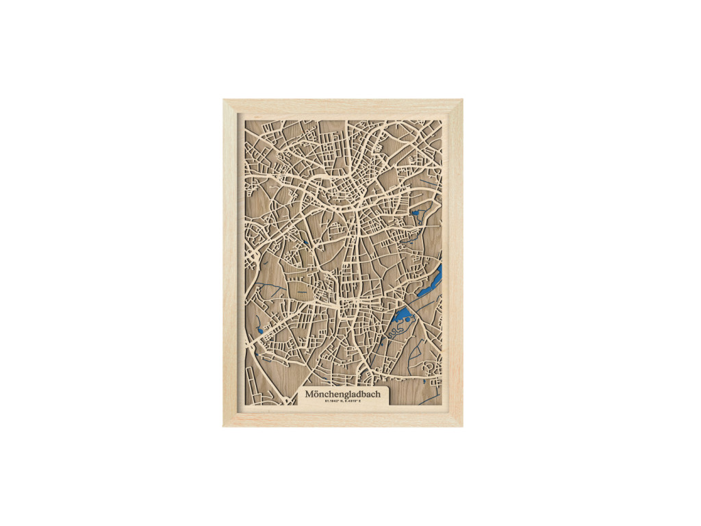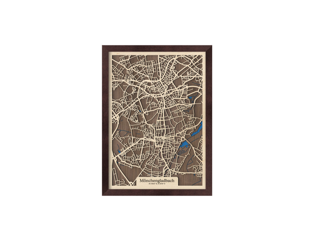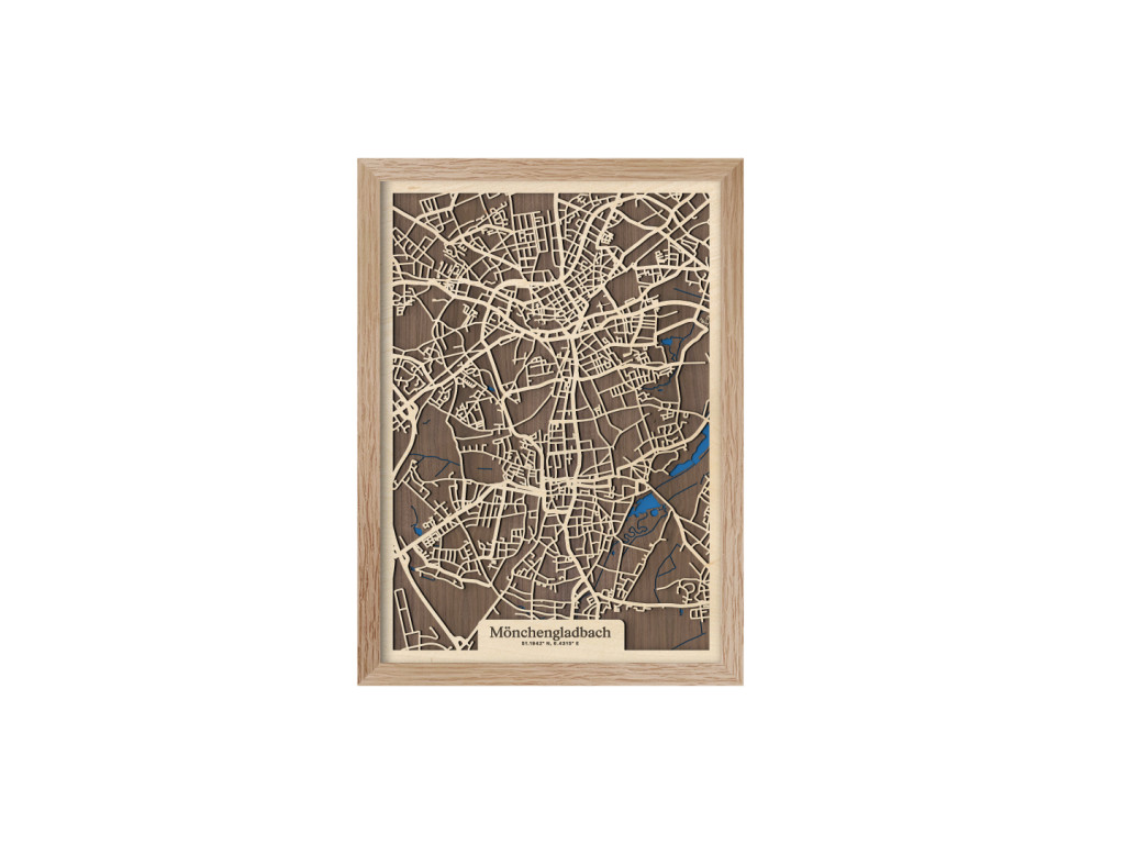 Wir stellen ein weiteres Stück aus der Kollektion drevko CITY vor - eine 3D-Karte von Mönchengladbach, einer lebendigen Stadt im Westen Deutschlands, die nicht nur eine reiche Fußballtradition, sondern auch viel Grün und einladende Parks zu bieten hat. In unserer detaillierten Holzdarstellung haben wir die historischen Straßen und die einzigartige Atmosphäre des Flusses Niers, der durch die Außenbezirke von Mönchengladbach fließt, originalgetreu eingefangen. Gerne passen wir sowohl die Farbgestaltung als auch die Größe an, damit Sie dieses urbane Kleinod ganz nach Ihrem Geschmack gestalten können.
