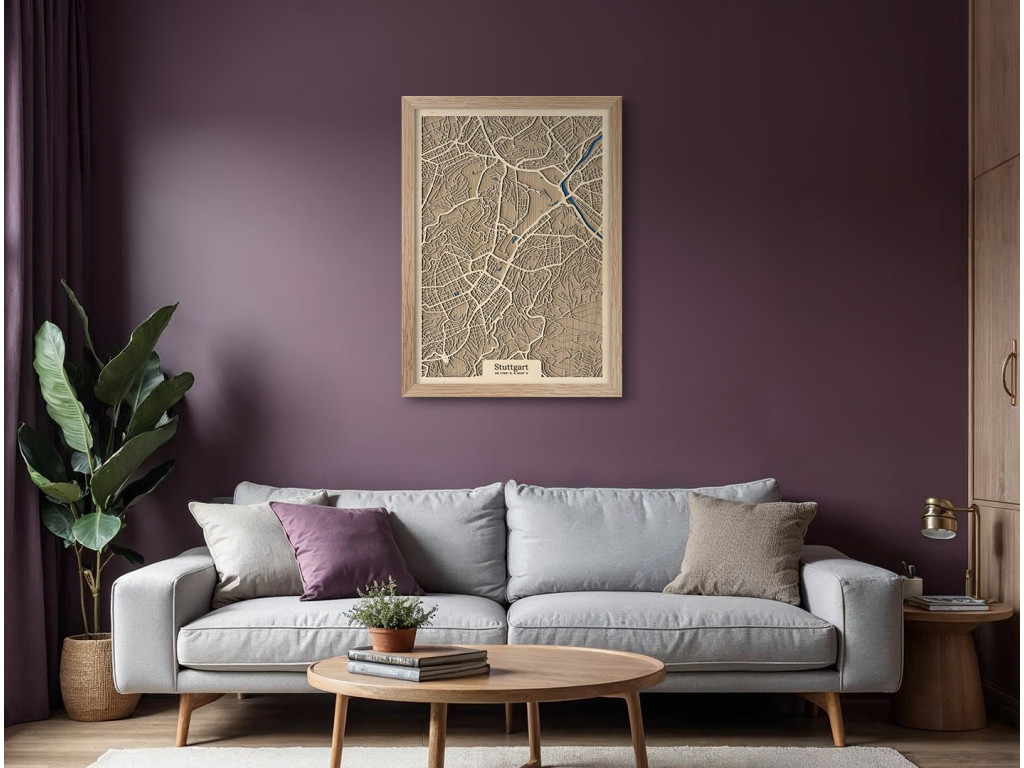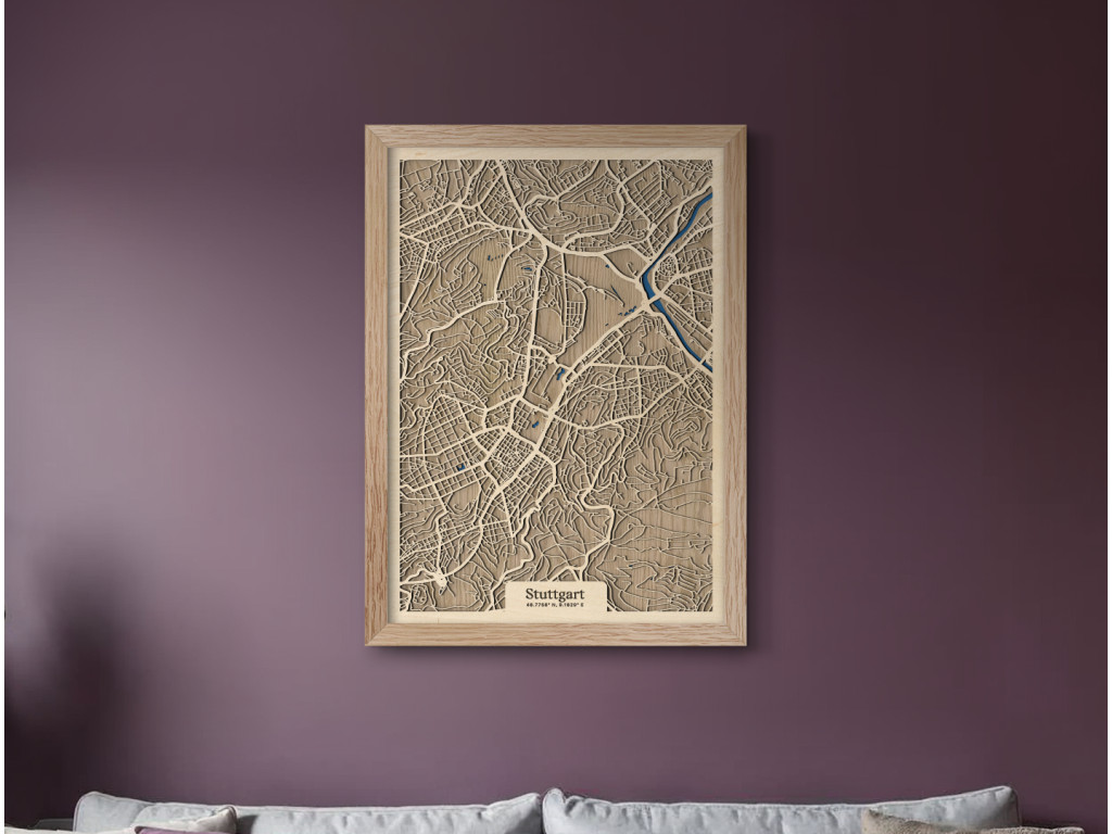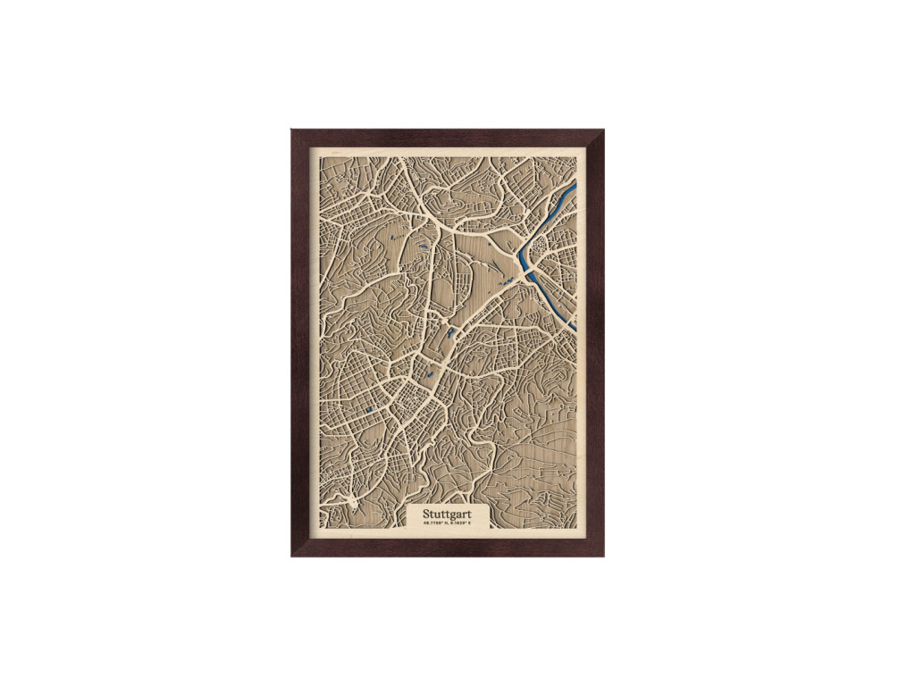 Wir stellen ein weiteres außergewöhnliches Stück aus der Kollektion drevko CITY vor - Stuttgart, die Hauptstadt des deutschen Bundeslandes Baden-Württemberg. In unserer Karte wird der unverwechselbare städtische Charakter lebendig, der von einer reichen Automobiltradition geprägt ist. Der Stadtplan zeigt auch den Neckar, der durch die Außenbezirke der Stadt fließt. Die Wahl des Dekors und der Größe passen wir genau an Ihre Wünsche an, so dass Sie die Atmosphäre Stuttgarts in Form einer einzigartigen 3D-Karte direkt bei sich zu Hause genießen können.