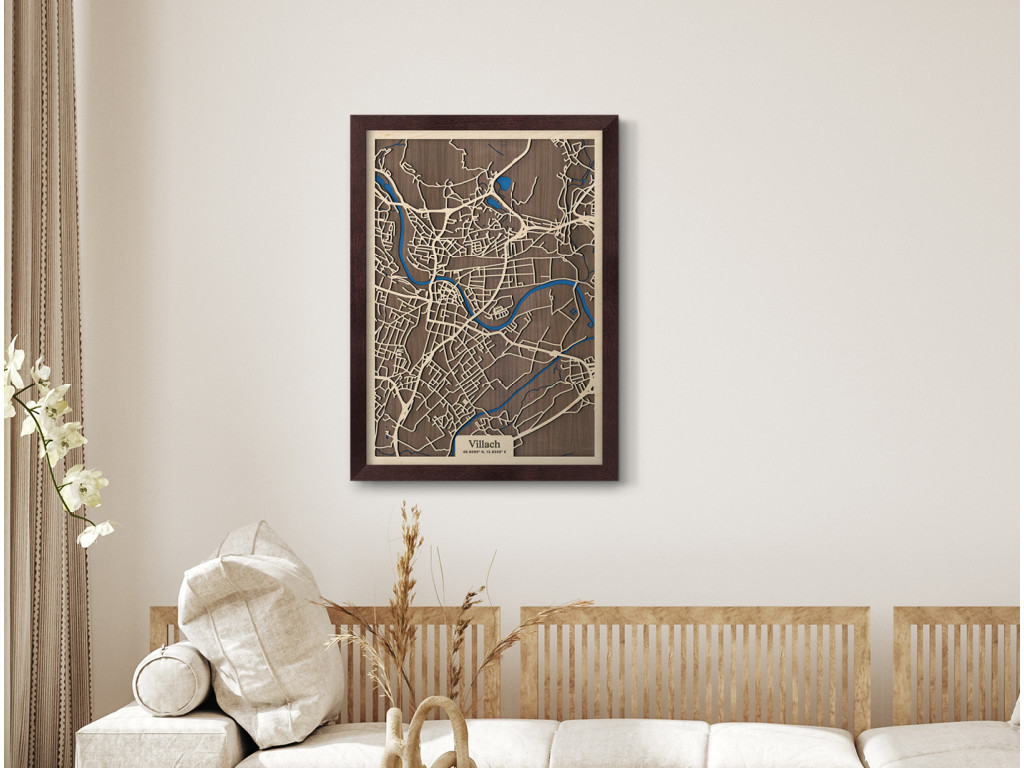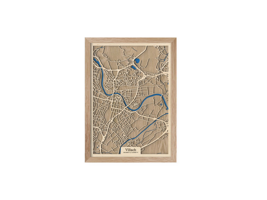 Die Kollektion drevko CITY enthält auch Villach, eine malerische Stadt im Süden Österreichs, die durch ihre moderne Energie und historische Eleganz besticht. Die Stadt liegt im Herzen Kärntens, in einer wunderschönen natürlichen Umgebung mit malerischen Seen, die der Landschaft einen einzigartigen Charme verleihen. Unsere 3D-Karte bildet die Straßen, Wege, Seen und den Fluss Drau genau ab und bringt ein authentisches Porträt von Villach direkt in Ihr Zuhause. Wählen Sie aus einer Vielzahl von Farbvarianten und zwei Größen, die Sie einfach aus unserem Angebot anklicken.