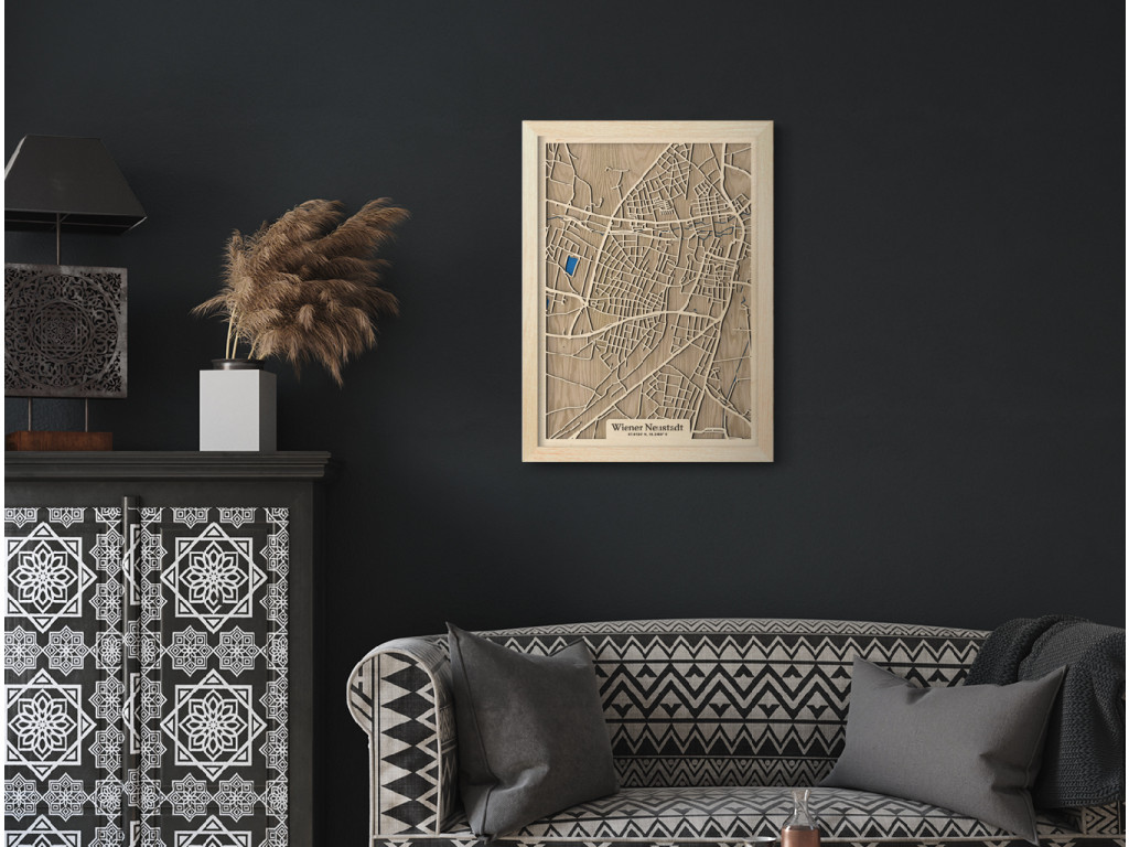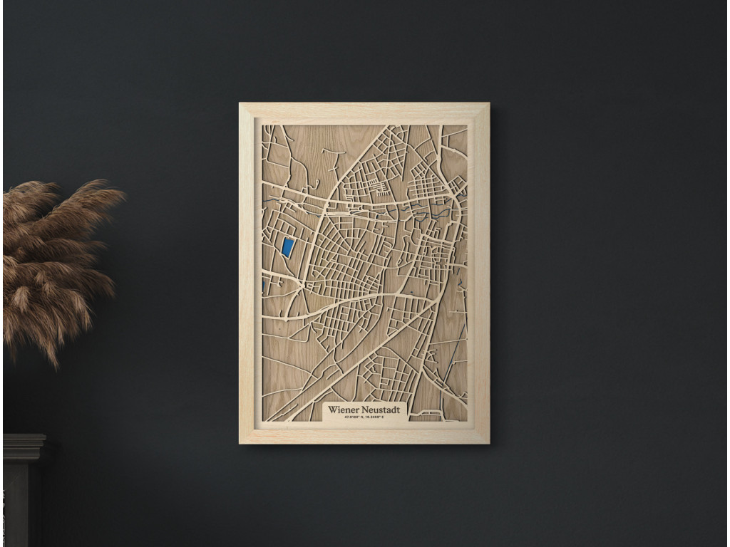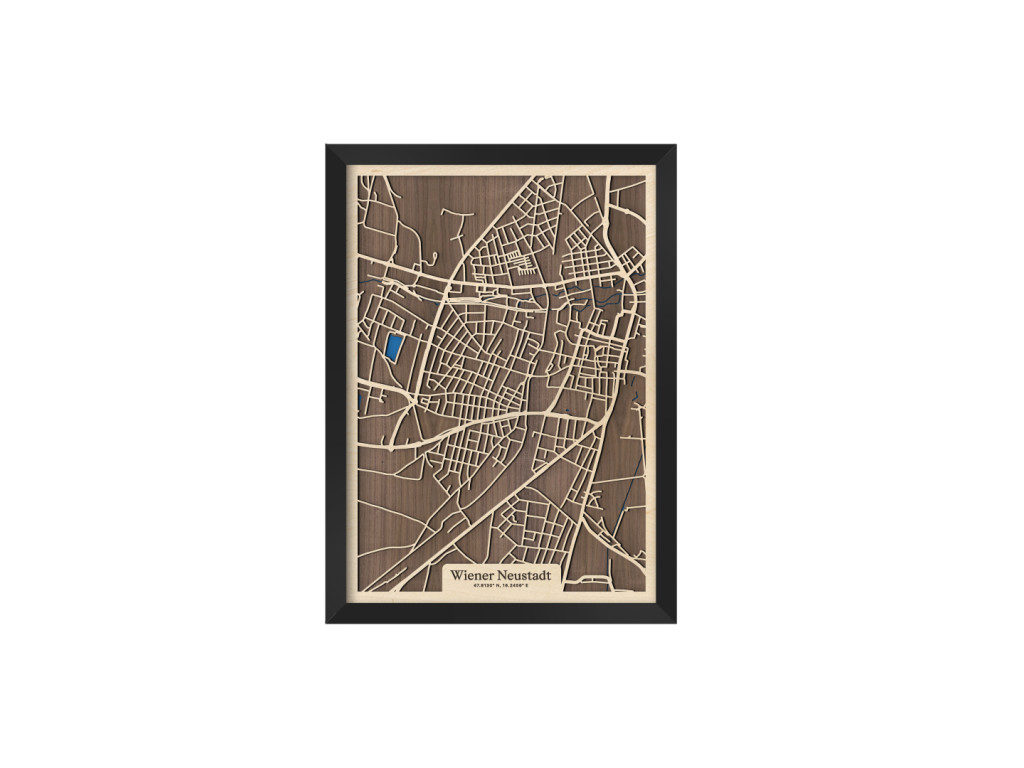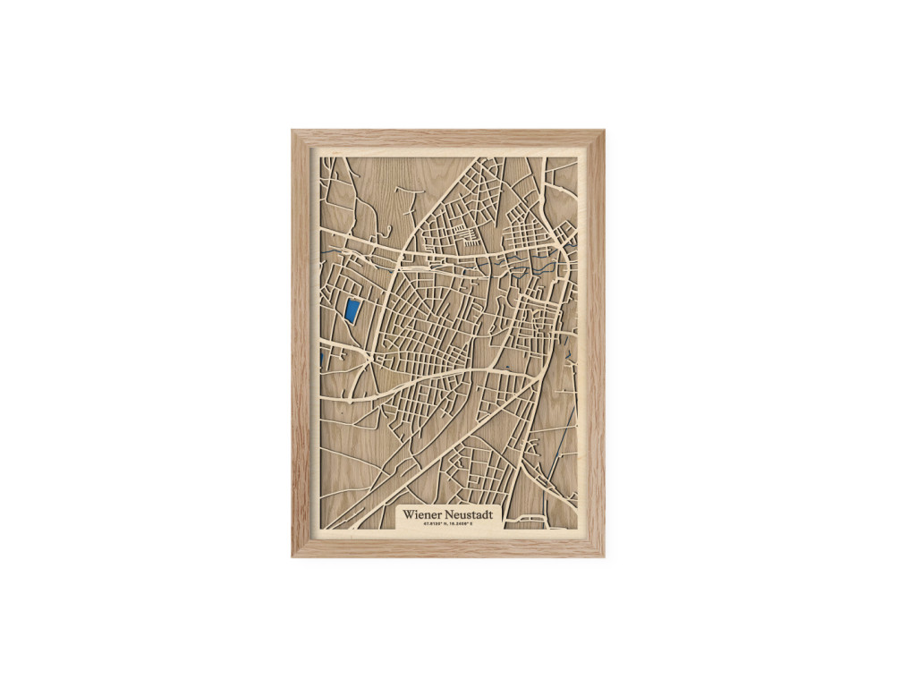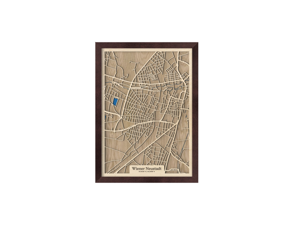 Die Wiener Neustadt ist eine wichtige Stadt in Niederösterreich, bekannt für ihre reiche Geschichte und ihre strategische Lage, nur wenige Kilometer südwestlich von Wien. Einst ein wichtiges Zentrum der römischen und mittelalterlichen Geschichte, bietet die Stadt heute eine Kombination aus historischen Denkmälern und modernem Leben. Ein interessantes Layout von Straßen und Hauptverkehrswegen aus der Vogelperspektive bietet eine 3D-Karte des Zentrums dieses faszinierenden Ortes. Neben dieser Stadt finden Sie in der Kollektion drevko CITY viele weitere ähnliche Dekorationen aus unserer Werkstatt. Wählen Sie aus einer Vielzahl von Farboptionen und zwei Größen, die wir zur Verfügung haben.