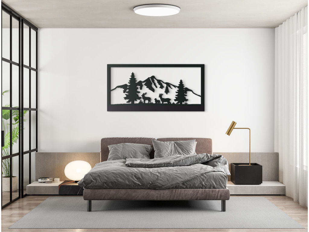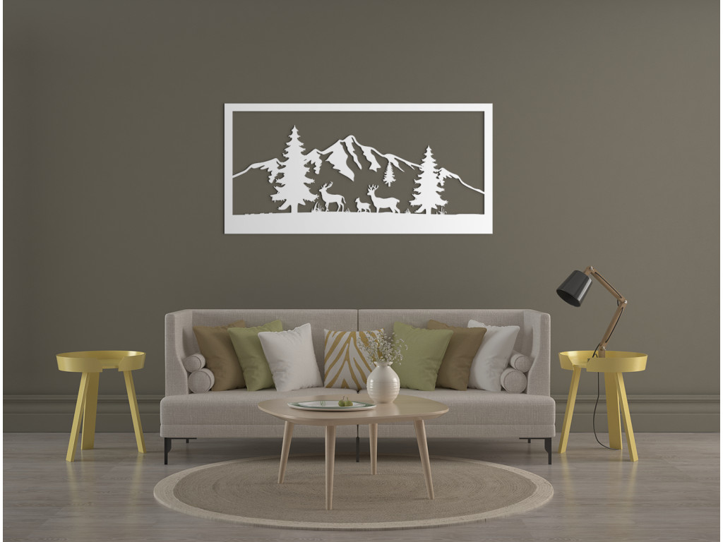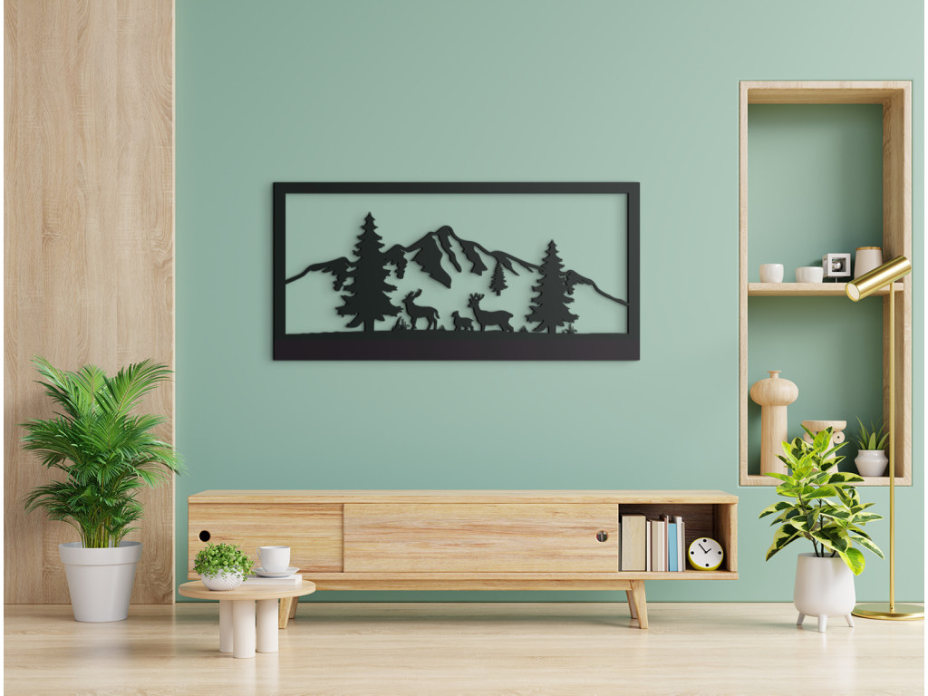 Das Holzbild mit Bergen und Wald bringt Originalität und ein Stück Natur in jeden Raum. Es ist ein ausgezeichnetes Wohnaccessoire. Das einfache Design macht er perfekt für jedes Zimmer. Die majestätischen Berge vermitteln Einzigartigkeit. Sie können unter mehreren Dekors und Bildgrößen wählen.