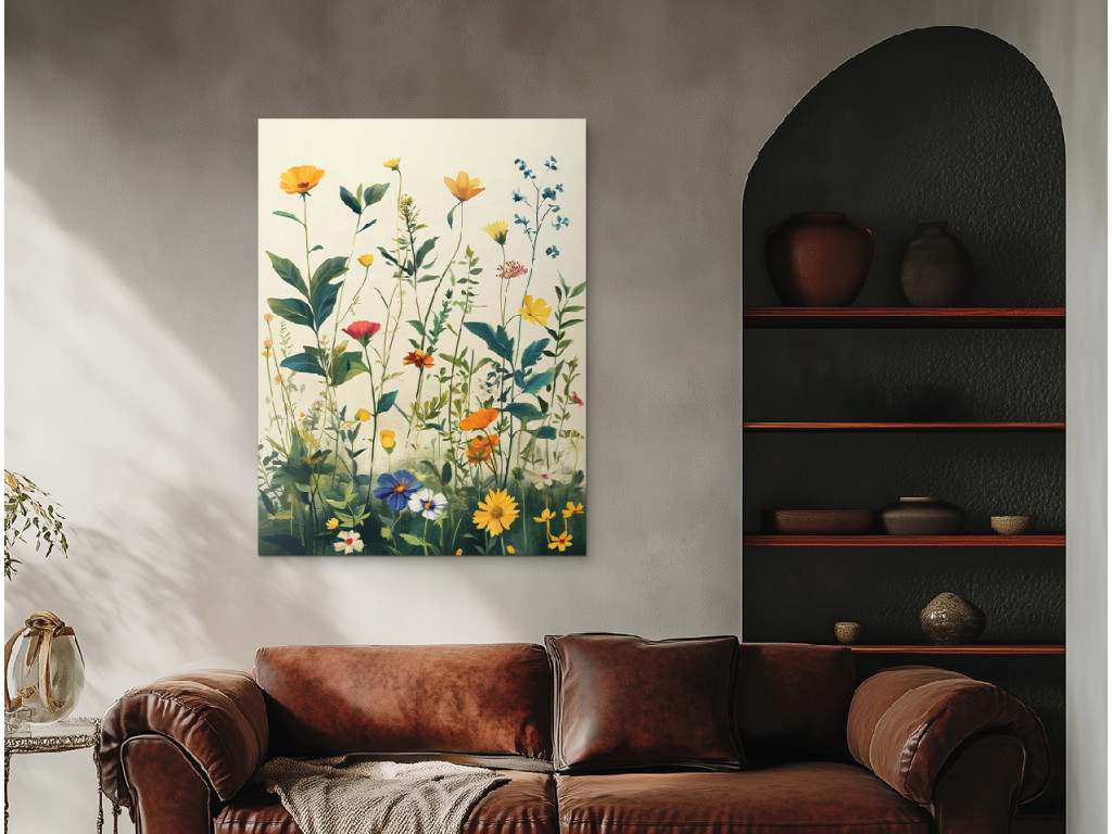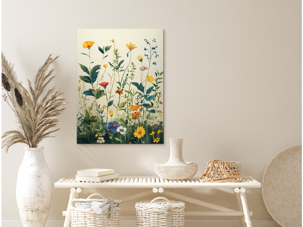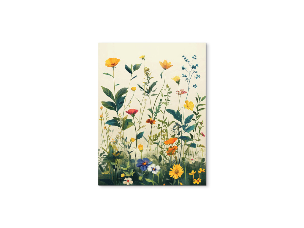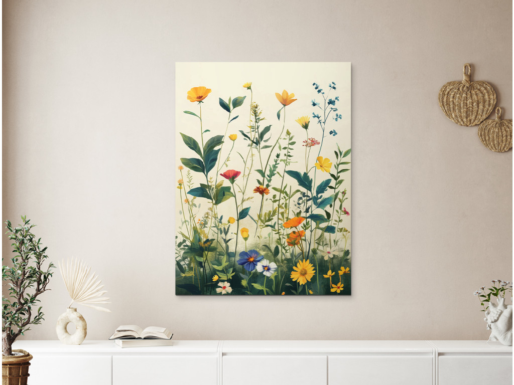 Wiesenblumen sind ein Bild voller Zartheit, Leben und natürlicher Schönheit – die Darstellung einer blühenden Wiese mit bunten Blumen wirkt frisch, fröhlich und natürlich. Die ideale Ergänzung für Innenräume, die ein Stück Natur und eine ruhige Atmosphäre vermitteln sollen. Passt hervorragend ins Schlafzimmer, in die Küche oder in Räume, in denen Sie Leichtigkeit und Optimismus schaffen möchten.