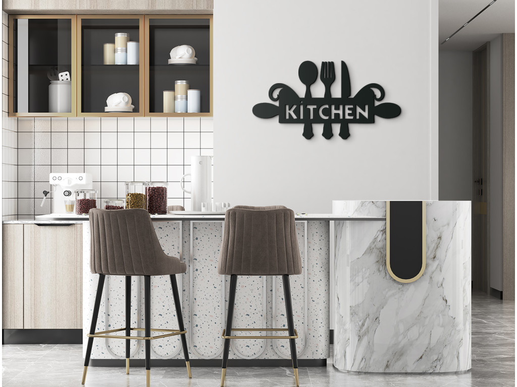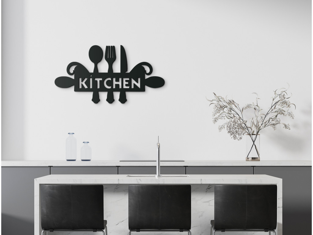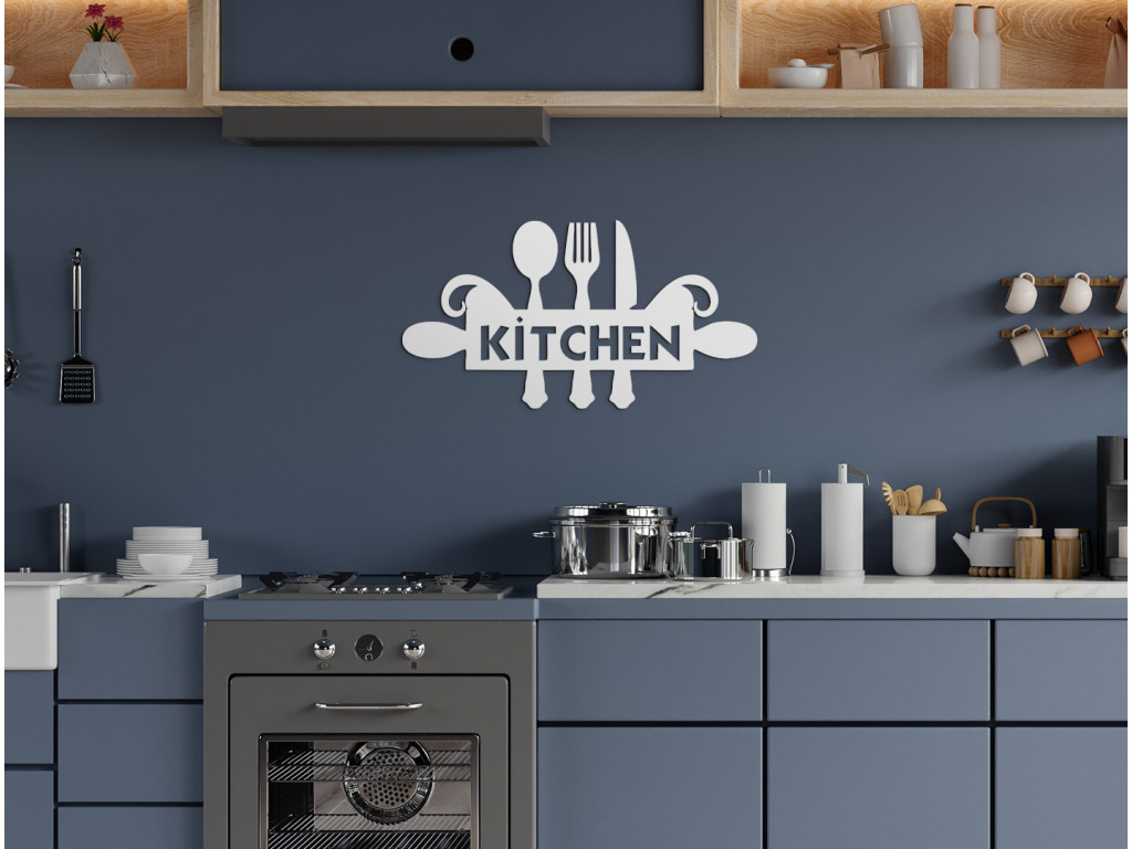 Eine Dekoration für triste Wände in Form eines Holzstickers mit dem Motiv von Besteck und der Aufschrift KITCHEN passt in jede Küche. Das zeitlose Design lässt sie nicht nur in modern eingerichteten Räumen, sondern auch in Retro- oder traditionellen Haushalten gut aussehen. Die Holzdekoration KITCHEN ist zudem auch ein sehr originelles Geschenk.