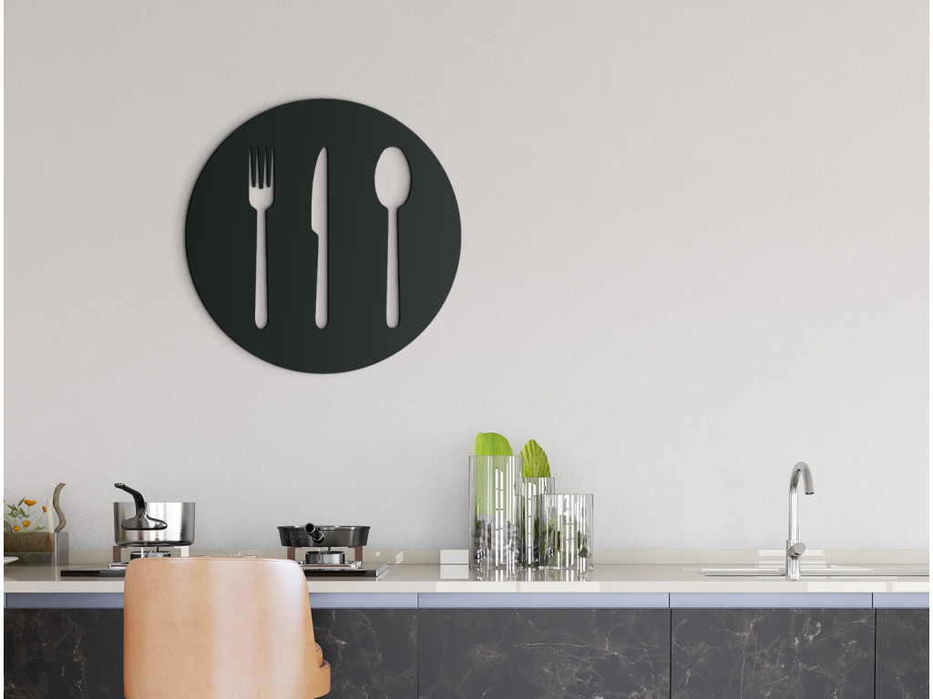 Das runde Bild aus Holz BESTECK verschönert die Wände in modernen und klassischen Innenräumen. Dank seines universellen Designs eignet es sich als Geschenk für jedermann. Verschönern Sie Ihren Haushalt mit diesem originellen Accessoire.