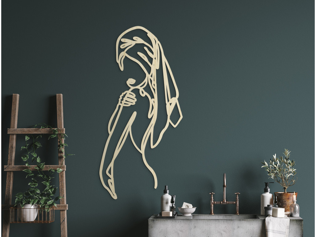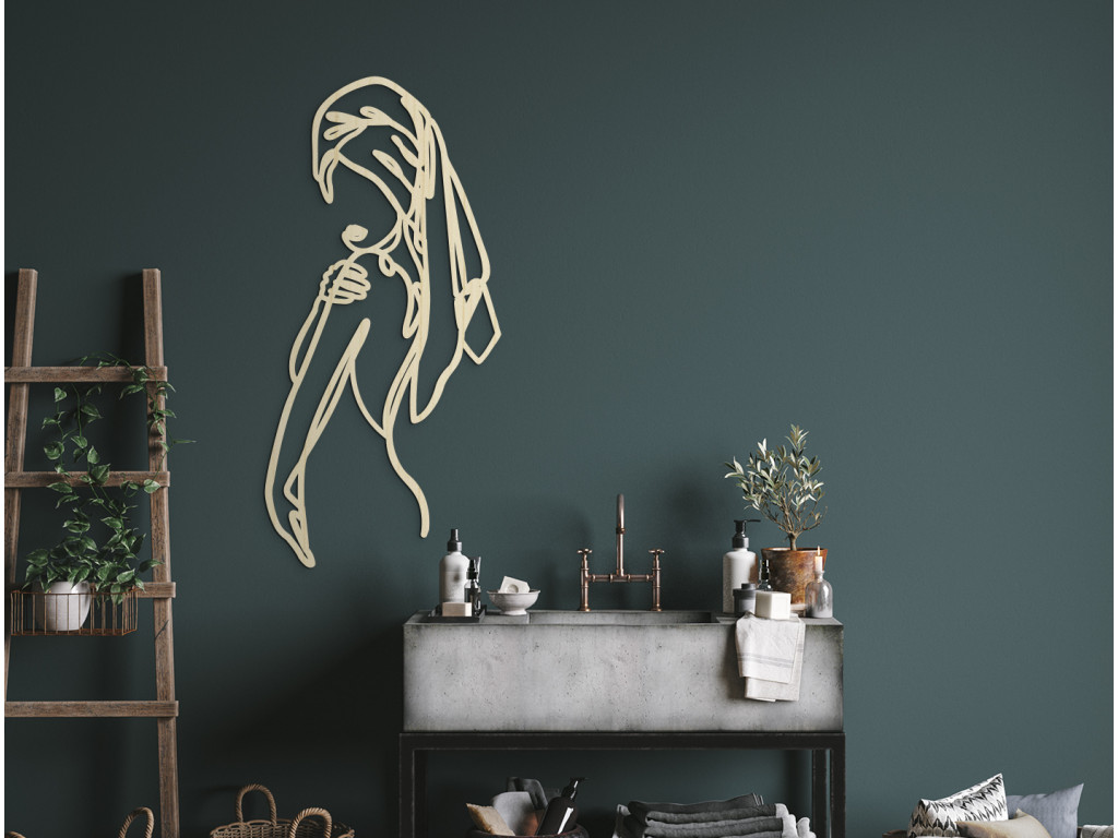 Das Holzbild BADEDAME ist das ideale Accessoire fürs Bade- oder Schlafzimmer, wo es einen Hauch von Luxus und Entspannung verbreitet.