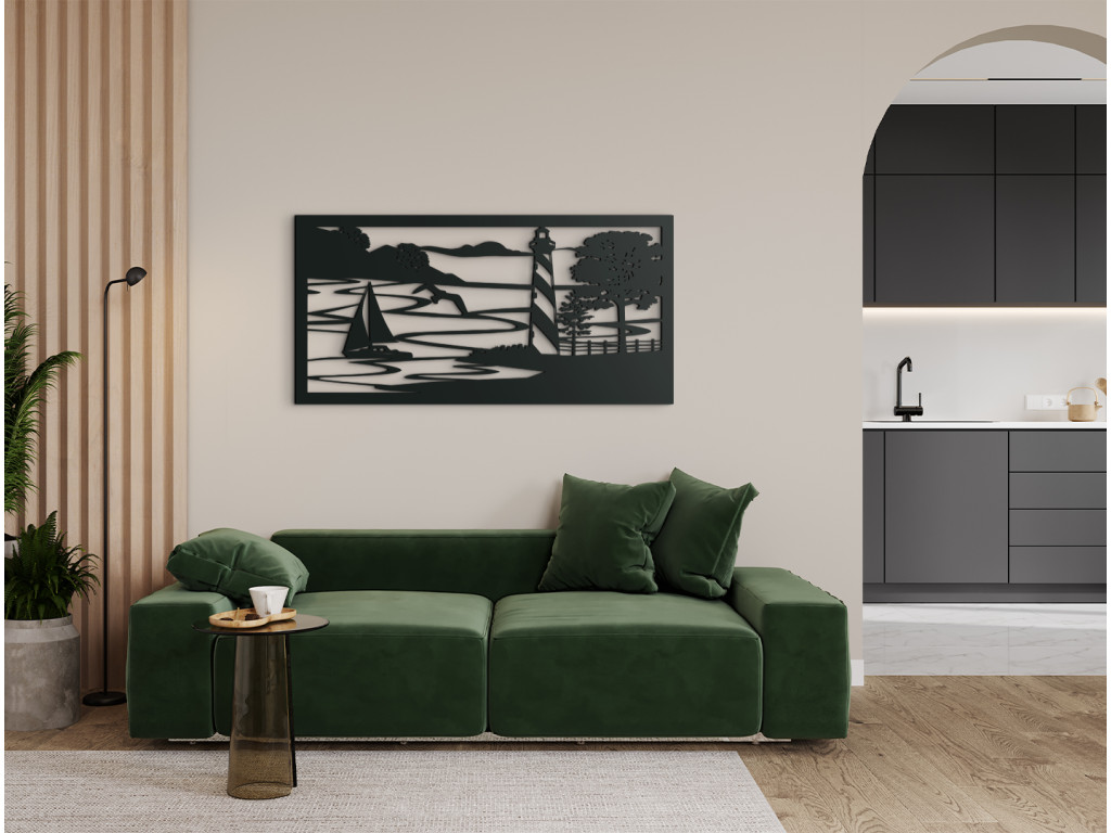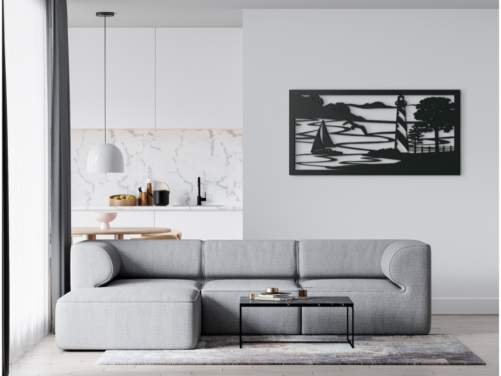 Das Holzbild HAFEN ist eine geeignete Dekoration für jeden Innenraum. Es zeigt einen Leuchtturm und ein Schiff, das in den Hafen zurückkehrt. Dieses Bild macht sich in jedem Raum des Hauses gut. Zudem ist es ein ausgezeichnetes Geschenk.