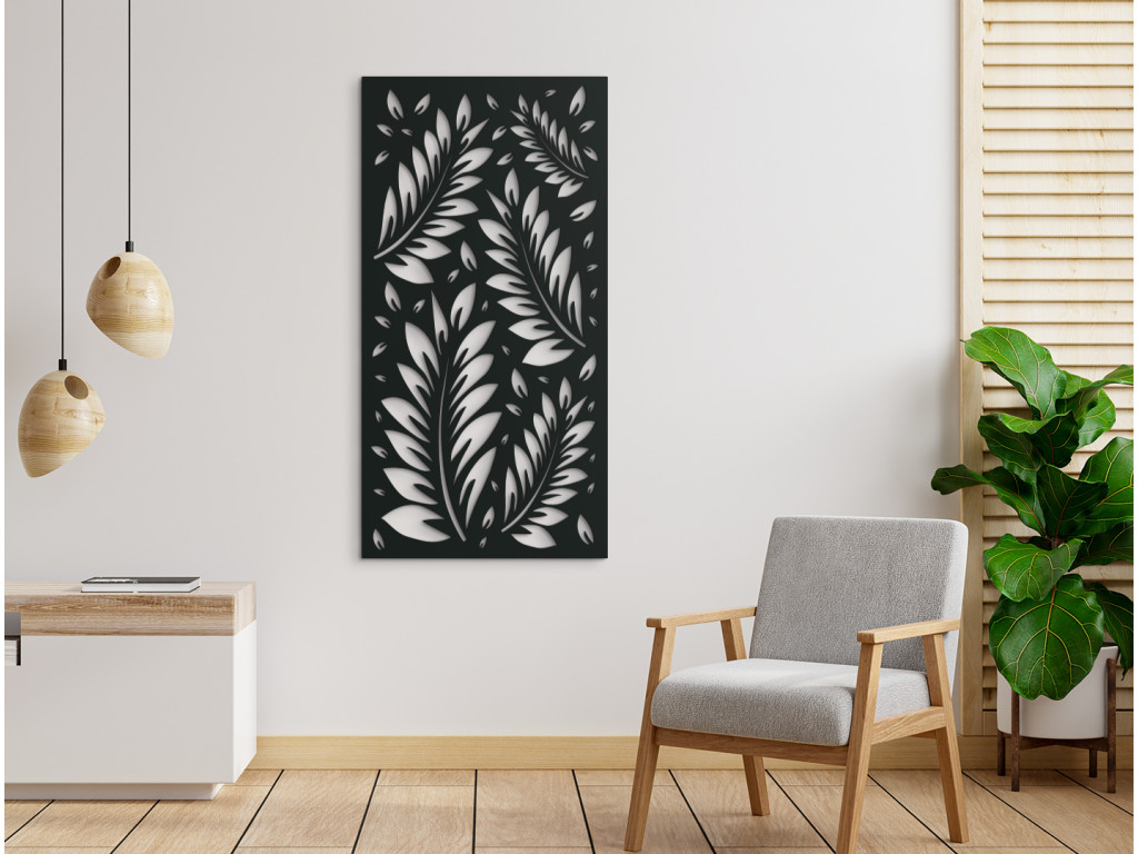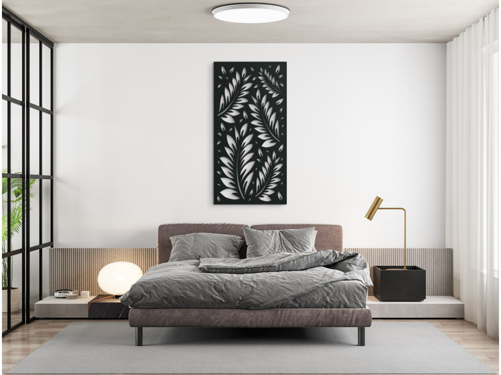 Das ausgeschnittene Bild BLÄTTER IM WIND bietet zarte Linien und präzise ausgearbeitete Details. Dank des einfachen Designs können Sie es ganz leicht an die Möbel und andere Dekorationen anpassen. Das Bild eignet sich für moderne Räume, Flure und Büros.