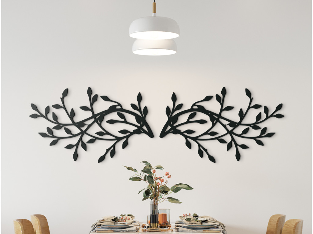Die moderne Innenraumdekoration BLÄTTER AN ÄSTEN wird jeden Raum verschönern. Das Holzbild macht aus jeder gewöhnlichen Wand einen Hingucker. Es besteht aus zwei Teilen, die zusammen als Bild angebracht werden können. Die Blätter hellen den Raum auf und sorgen für eine angenehme Atmosphäre.