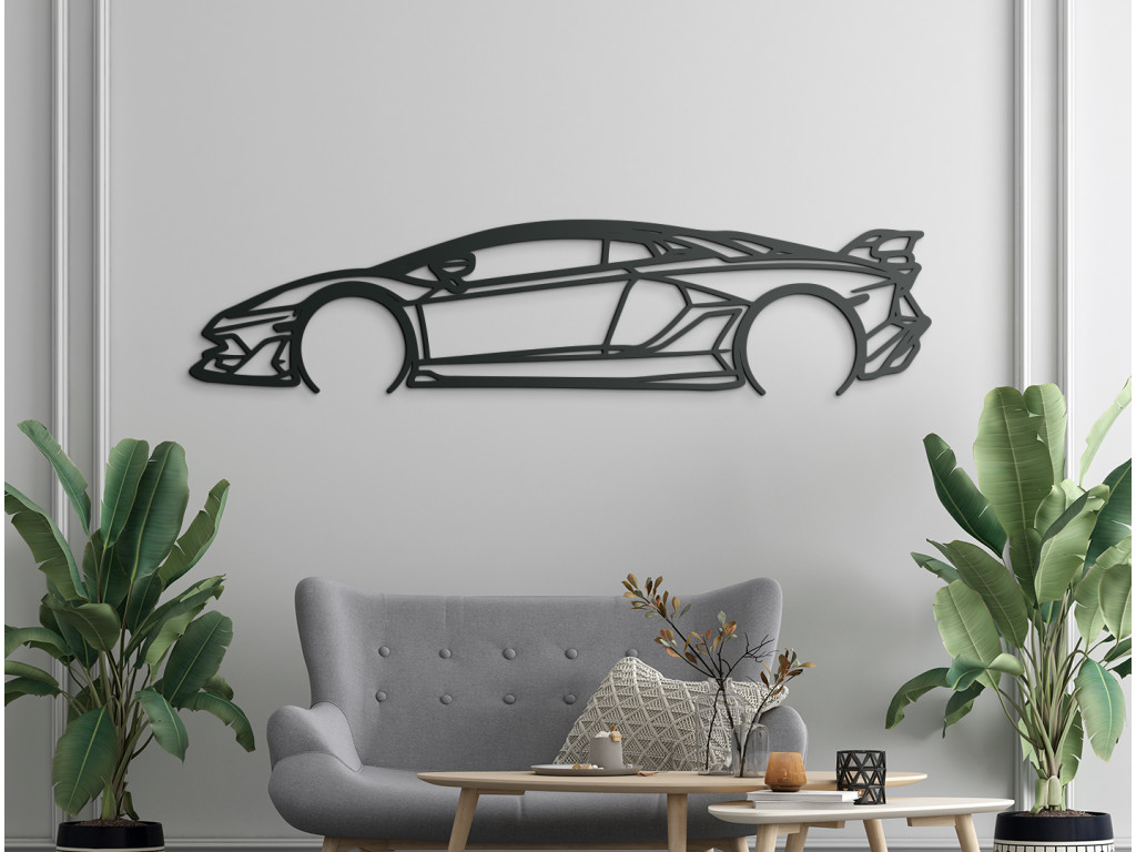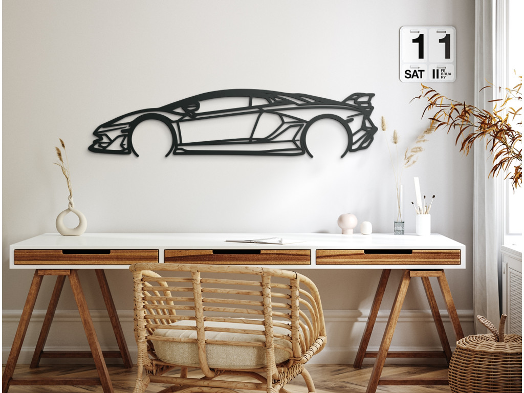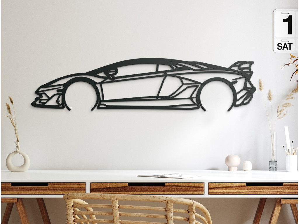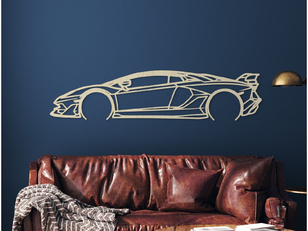 Ein Lamborghini ist ein Auto, bei dem jeder Junge oder erwachsene Mann davon träumt, dieses Auto eines Tages in seiner Einfahrt vor dem Haus zu parken. Gönnen Sie Ihrem Sohn dieses Holzbild eines Modell 22 Aventador SVJ, damit er jeden Tag an diesen schönen Traum erinnert wird.