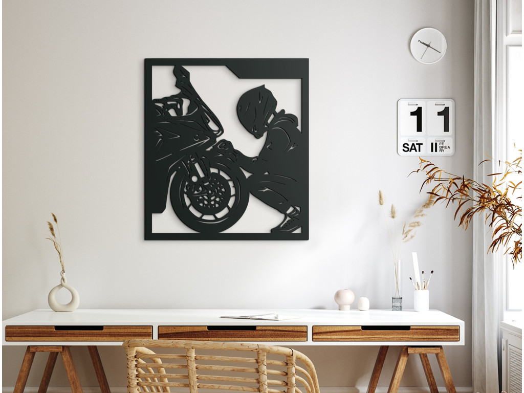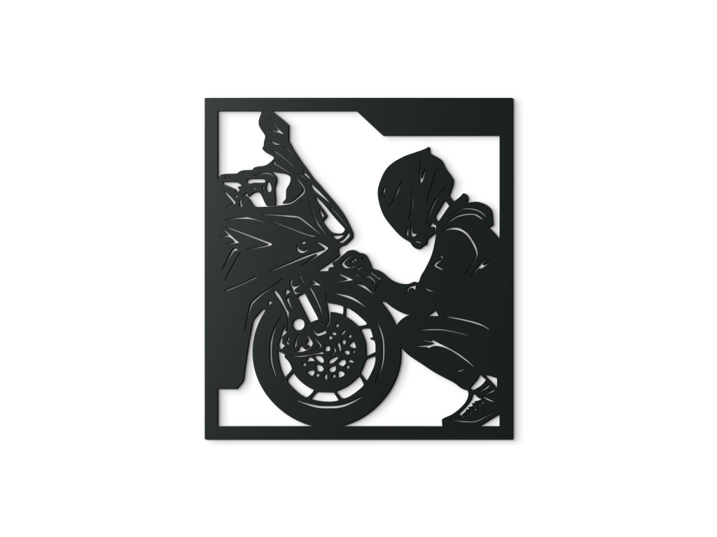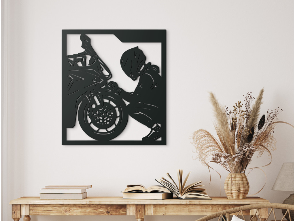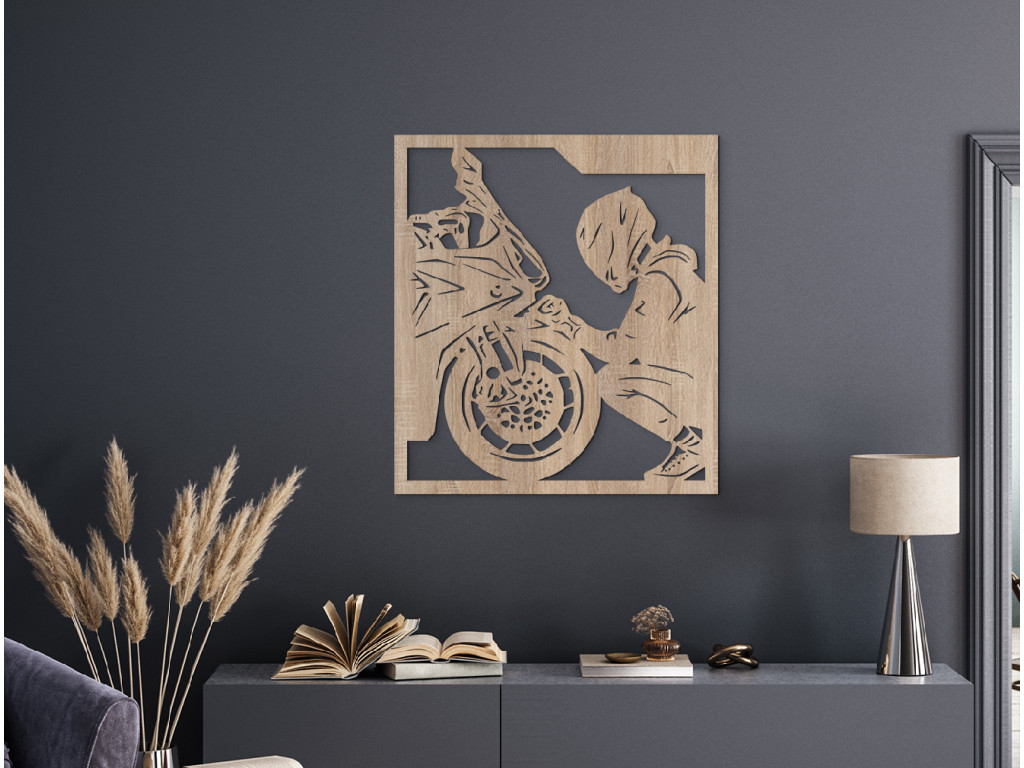 Sie sind ein Motorradfan? Dann sollten Sie sich diesen stilvollen Holzsticker eines Motorradfahrers und seines Motorrads nicht entgehen lassen. Sie können auch Ihre Lieben damit erfreuen, die ein besonderes Verhältnis zu diesen zweirädrigen Schönheiten pflegen.