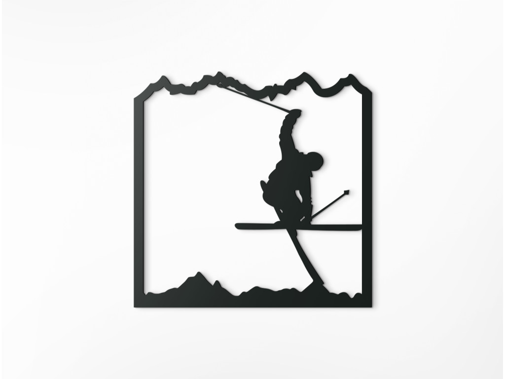 Das Holzbild mit dem springenden Skifahrer ist ein Accessoire, das Sie nicht aus den Augen lassen. Das moderne Design ist ideal für moderne Kinder-, Wohn- oder Schlafzimmer, wo es perfekt mit der übrigen Einrichtung harmoniert.