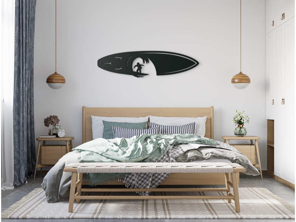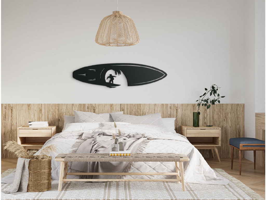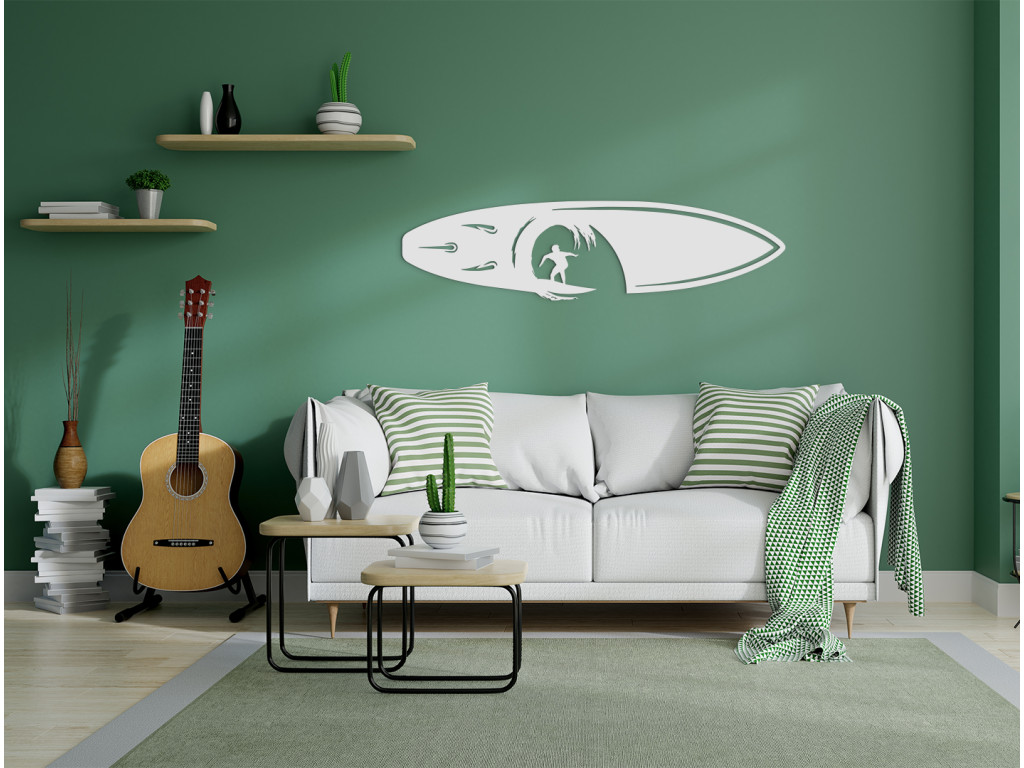 Der Holzsticker mit dem Surfer verleiht dem Raum ein einzigartiges Design. Er passt in moderne Büros, Wohnzimmer, Dielen und Vorsäle. Bei jedem Einblick dieses Bildes wird es Sie von Neuem begeistern.