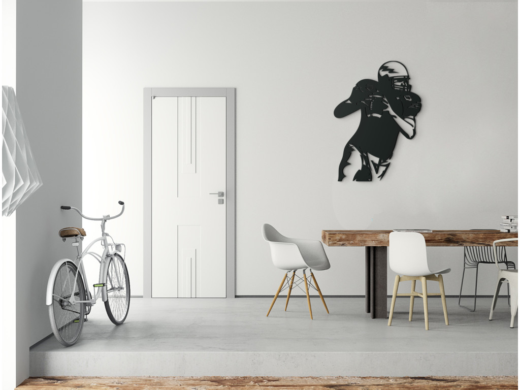 Der Holzsticker American Football Player wird eine originelle Dekoration für einen modernen Innenraum sein. Sie können ihn über der Couch, einer Kommode oder einem Bett aufhängen. Dank dieses Stickers, werden Sie jeden Raum hervorheben und jede fade Wand verschönern.