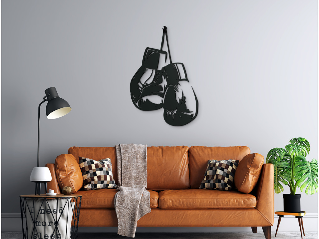Die Boxhandschuhe verschönern als Dekoration jede Wand und sorgen für ein originelles Design. Die Handschuhe hängen symbolisch an einem Nagel, sodass sie in jeden Raum passen werden.