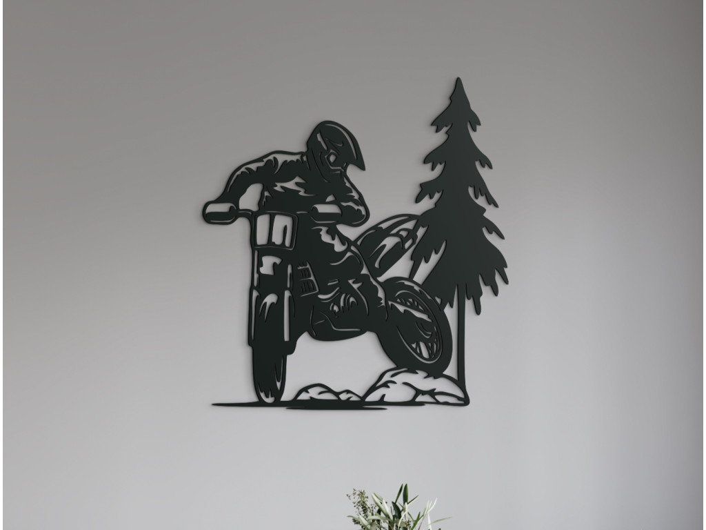 Sie mögen Crossmotorräder und Adrenalinfahrten in den Bergen? Dann darf dieser stilvolle Holzsticker mit dem Motorrad nicht fehlen. An der Wand präsentiert er sich originell und einzigartig. Zudem ist er ein ausgezeichnetes Geschenk für die Fans solcher Fahrzeuge.
