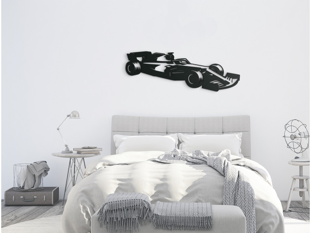 Die Holzdekoration mit Formel-1-Motiv wird jeden Jungen und Mann begeistern, der sich für schnelle Autos interessiert. Der Wandsticker passt über ein Bett, eine Kommode oder eine Couch. Er ist sowohl für moderne als auch für klassische Innenräume geeignet.