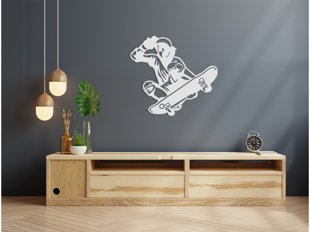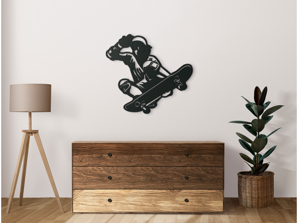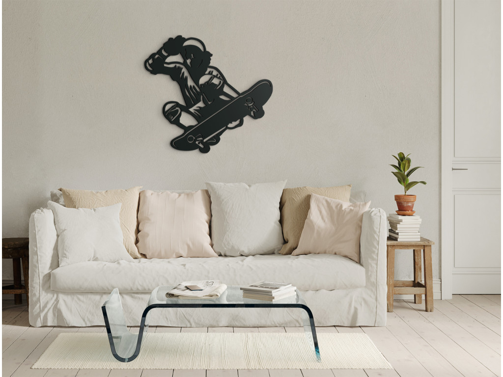 Der Holzsticker SKATEBOARDER ist eine originelle Dekoration für moderne Innenräume. Sie können ihn über der Couch, der Kommode oder dem Bett platzieren. Dank dieses Stickers verschönern Sie jeden Raum und jede langweilige Wand.