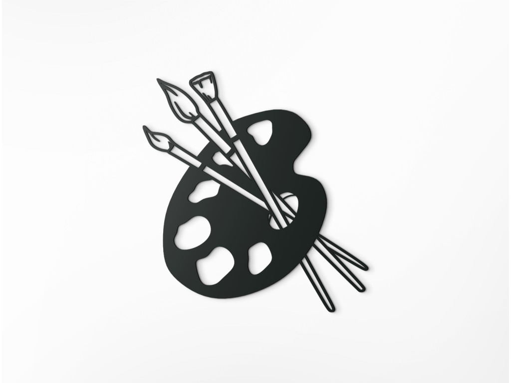 Die Malerpalette und Pinsel zählen zur Grundausstattung jedes Künstlers. Als Dekoration passen sie deshalb in Ateliers, Studentenräume, aber auch ins Wohn- oder Kinderzimmer.