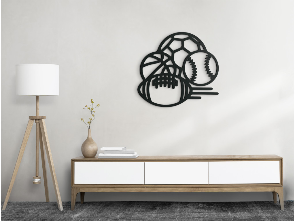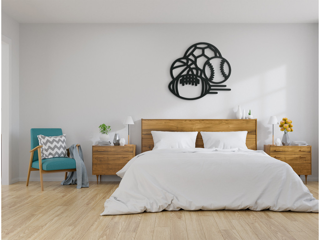 Der Holzsticker SPORTBÄLLE wird eine originelle Dekoration für moderne Innenräume sein. Sie können ihn über eine Couch, einer Kommode oder einem Bett anbringen. Dieser Sticker verschönert jeden Raum und macht langweilige Wände interessanter.