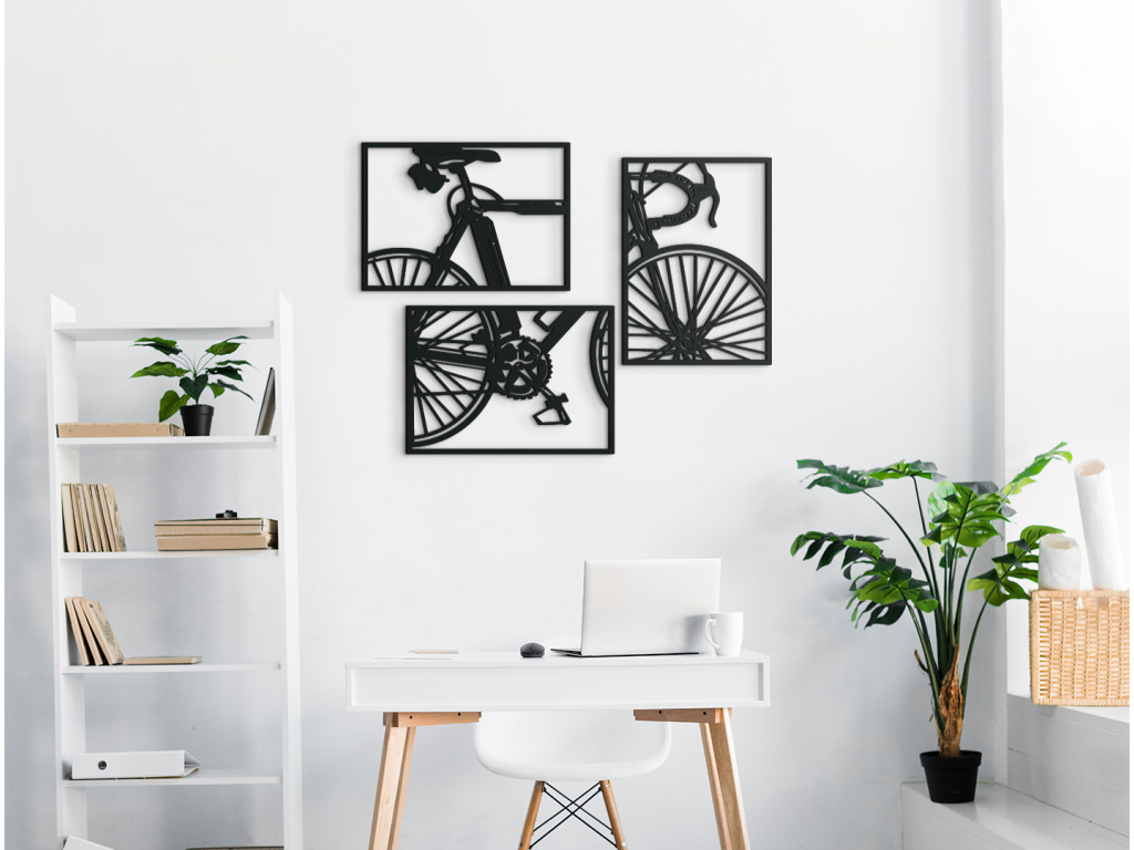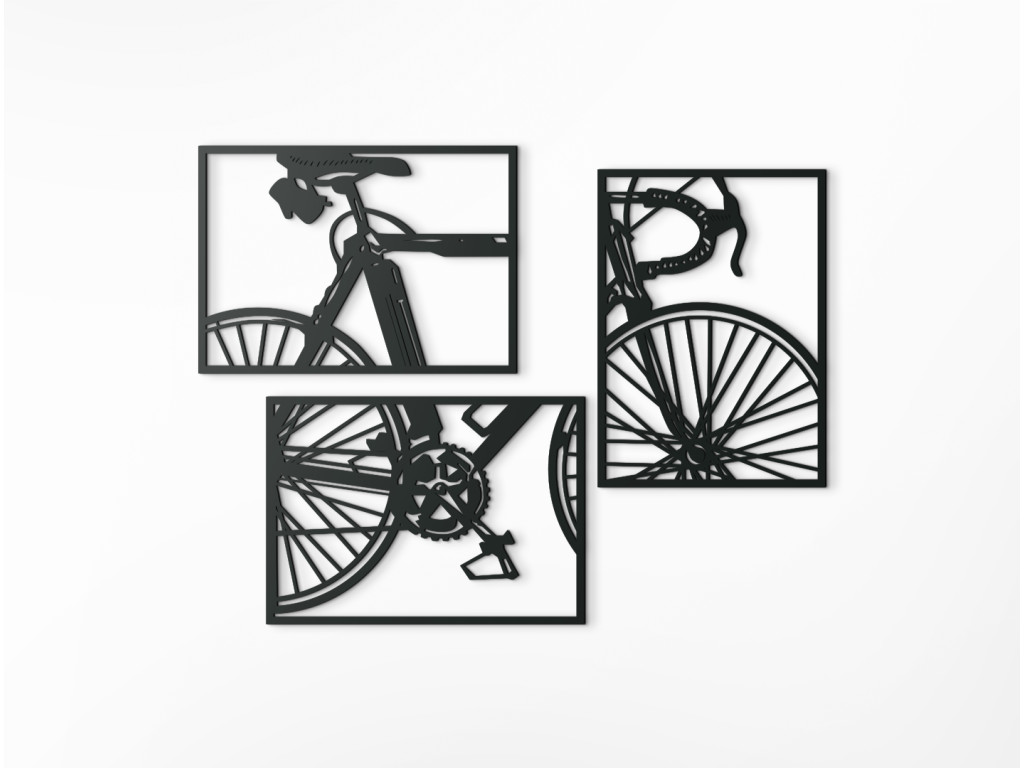 Für Liebhaber des Radsports haben wir ein originelles Holzbild in ansprechendem Design. Das Bild besteht aus 3 Teilen, die zusammen ein Fahrrad bilden. Das Bild ist geeignet für moderne Wohnzimmer, Schlafzimmer oder das Büro. Zudem ist es ein hervorragendes Geschenk für einen begeisterten Radfahrer oder eine Radfahrerin.