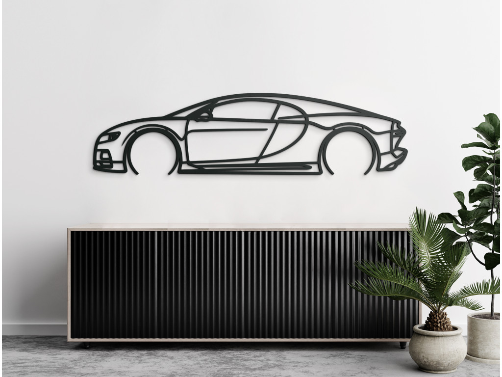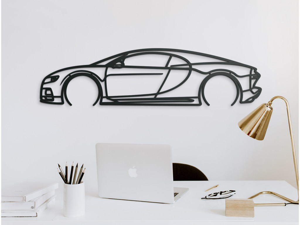 Die Holzdekoration mit dem Motiv des Bugatti Chiron begeistert jeden Jungen und jeden Mann, der sich für schnelle Autos interessiert.