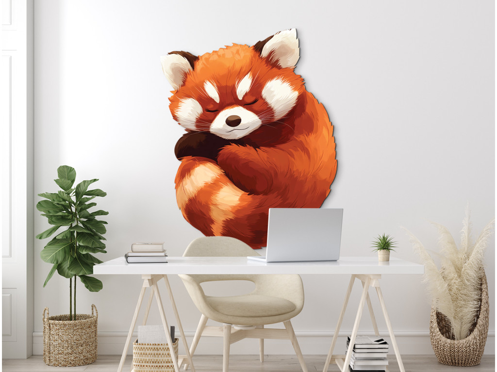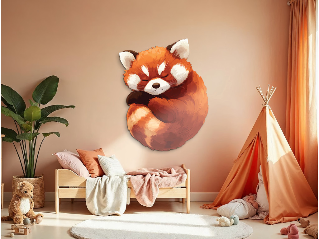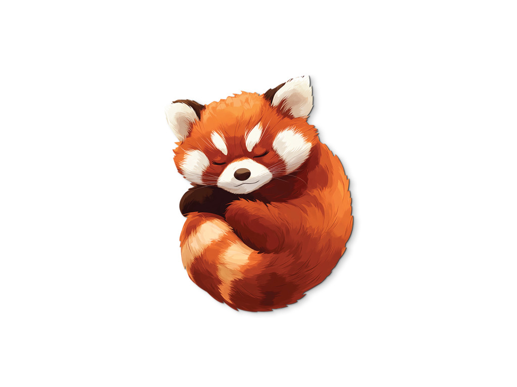 Illustration eines Roten Pandas – eines niedlichen Bewohners des östlichen Himalaya und Südwestchinas. Sein zartes rotbraunes Fell, seine kontrastierenden schwarzen Beine und sein markanter gestreifter Schwanz verleihen ihm ein einzigartiges Aussehen. Dieses friedliche Säugetier ist ein Symbol für Ausgeglichenheit, Sanftmut und natürliche Schönheit.