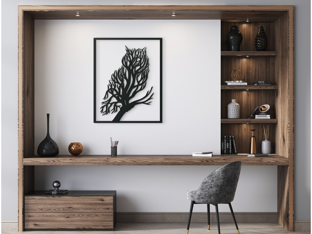 Das hölzerne Wandbild EULE UND BAUM wirkt ungewöhnlich und erfrischend. Die Eule ist ein Symbol für Weisheit und verleiht in dieser atypischen künstlerischen Ausführung jedem Raum eine Note raffinierter Eleganz.