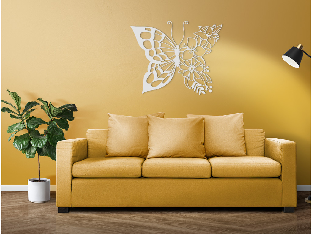 Die romantische Darstellung eines Schmetterlings in Gestalt eines Wandstickers aus Holz verschönert leere Wände und macht Räume gemütlicher. Der Blumenschmetterling ist eine Dekoration für jeden, der Blumen und Schmetterlinge mag, aber auch für verträumte Naturen und Menschen mit einem Sinn für abstrakte Kunst.