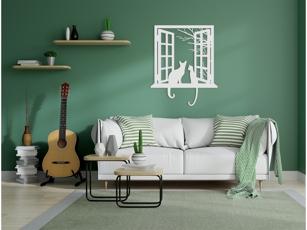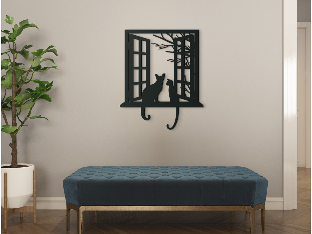 Das elegante Wandbild mit dem Motiv eines offenen Fensters und zwei Katzen auf der Fensterbank ist genau das Richtige, um langweilige Wände in Ihrem Haushalt zu verschönern. Die Holzdekoration passt zu modernen wie auch zu traditioneller eingerichteten Räumen.