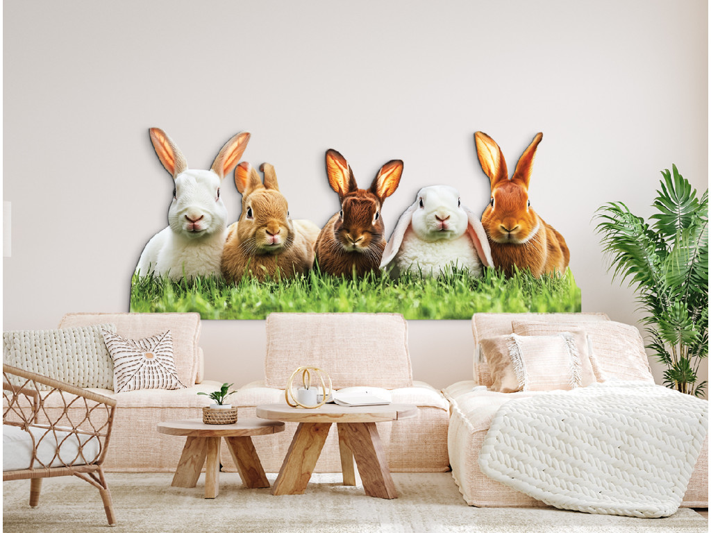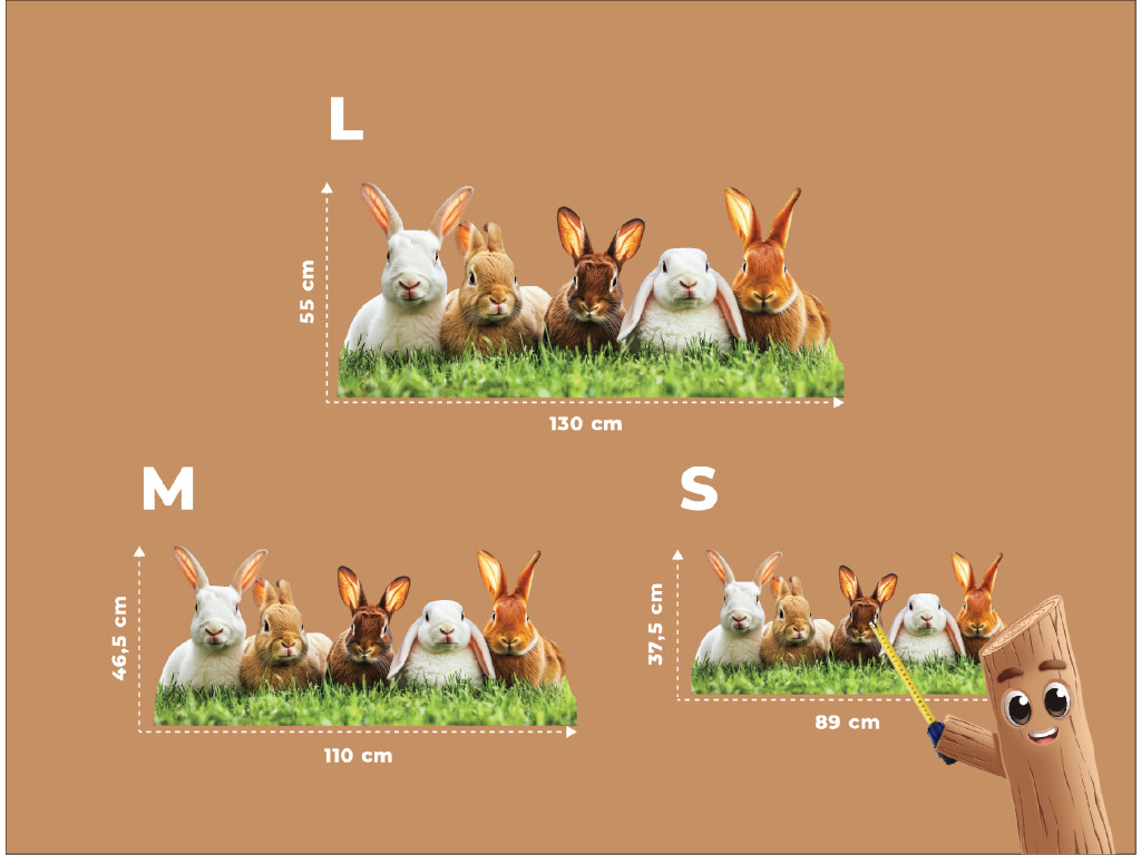 Der hübsche Wandsticker mit einer Gruppe von Hasen bringt Zartheit und Verspieltheit in den Raum. Ideal als Dekoration für Kinderzimmer, Leseecken oder Spielecken – er schafft eine gemütliche und fröhliche Atmosphäre mit einem Hauch von Natur.