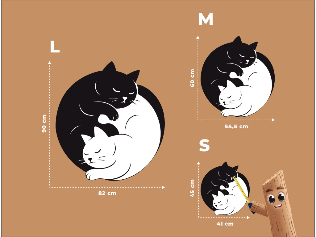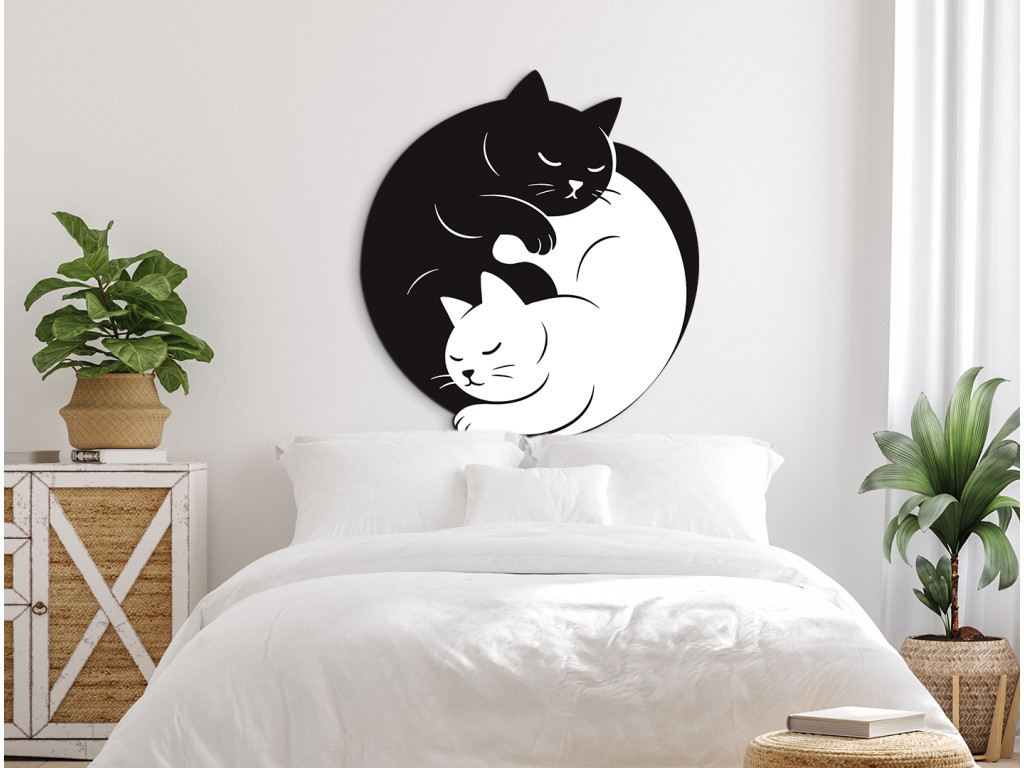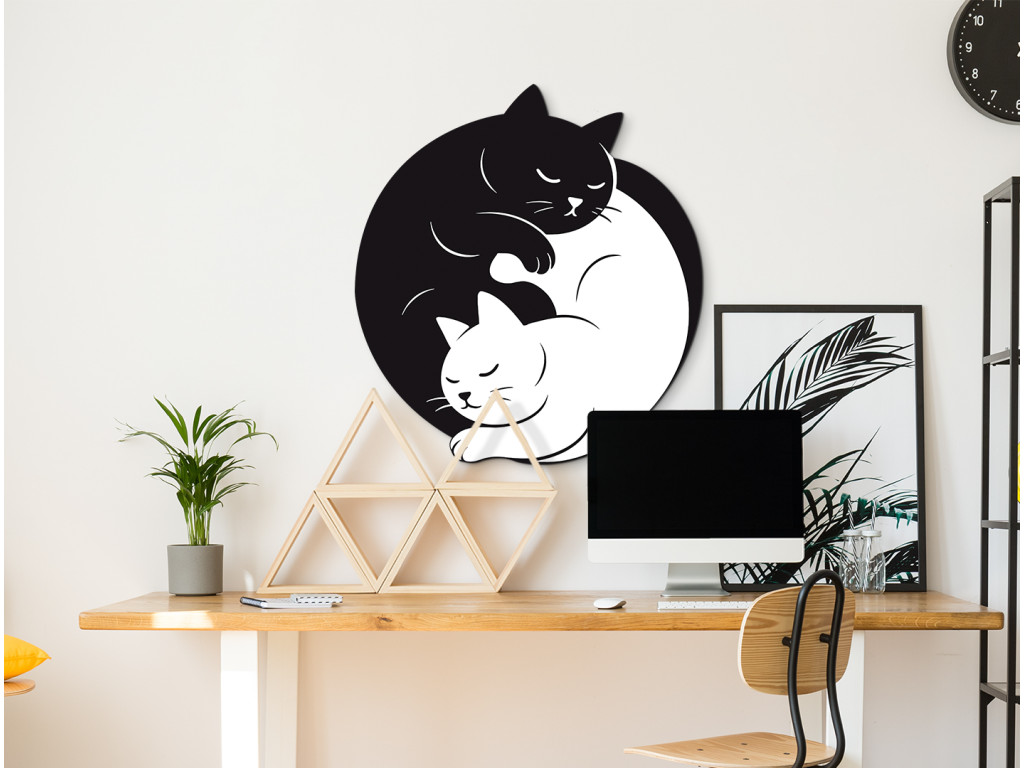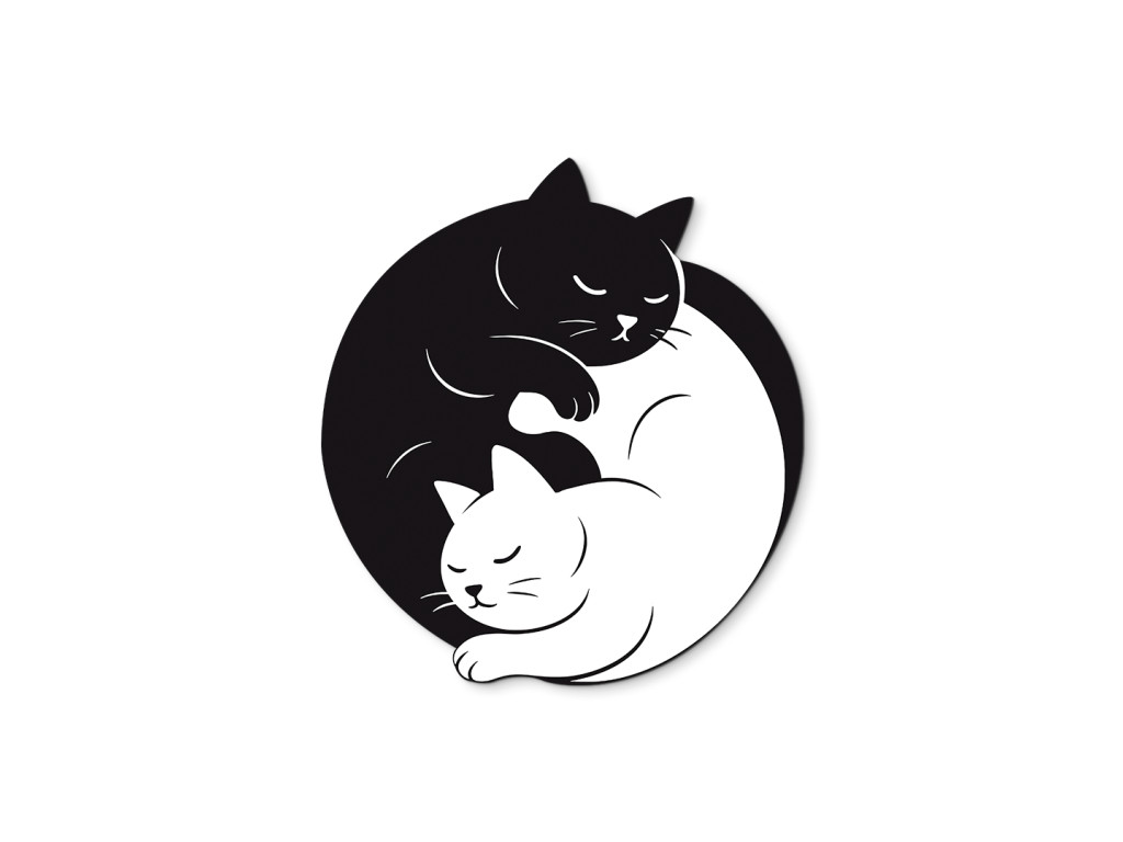 Die originelle Darstellung des alten Symbols Yin und Yang in Form von zwei ineinander verschlungenen Katzen hat eine spielerische und zugleich tiefgründige Bedeutung. Die schwarze und die weiße Katze stehen für die Harmonie der Gegensätze – Dunkelheit und Licht, Ruhe und Bewegung, das weibliche und das männliche Prinzip. Ihre verschlungenen Körper betonen den ewigen Kreislauf des Gleichgewichts, der Zusammengehörigkeit und der Verbundenheit von allem, was in der Natur existiert.