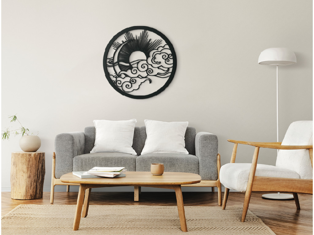 Das Holzbild Sonne und Mond ist eine schöne Dekoration für Ihre Wohnung oder Ihr Haus. Sie können es nach Ihren Wünschen im Wohnzimmer, Küche und Büro platzieren. Sein schlichtes und originelles Design macht es zu einer Dekoration sowohl für moderne als auch für klassische Räume.