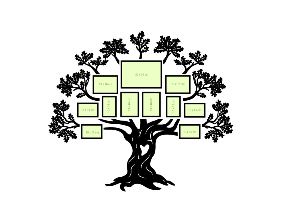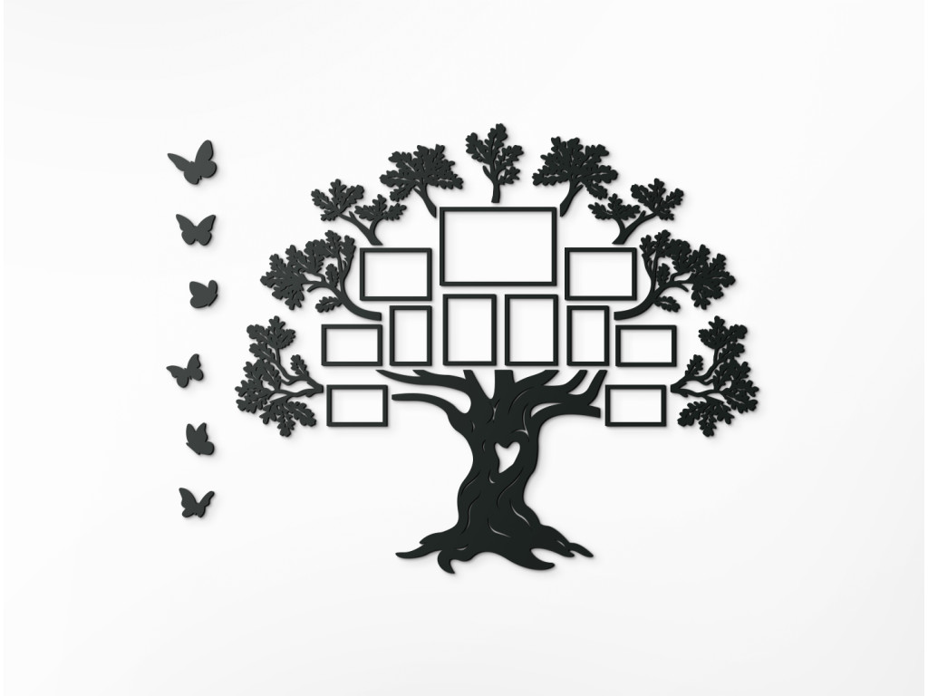 Der große Lebensbaum bekommt noch mehr Symbolik durch 11 Fotorahmen, die Sie mit den schönsten Familienmomenten in 3 Standardfotoformaten füllen können. Der originelle Fotorahmen aus Holz besteht aus einem Stamm mit einem geschnitzten Herz und einzelnen Ästen. Sie können den Baum mit 6 Schmetterlingen schmücken, wobei der Kreativität keine Grenzen gesetzt sind.