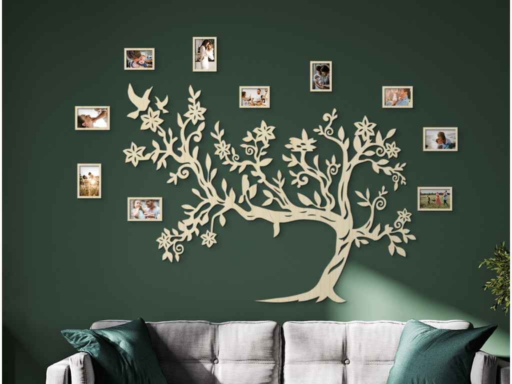 Die Symbolik des Lebensbaums bekommt eine vollkommen neue Dimension, wenn er mit Fotos aus Ihrem Familienleben verziert wird. Der einzigartige Fotorahmen aus Holz wird bei uns in drei Größen hergestellt und jede Variante bietet Raum für eine andere Anzahl von Foto in Standardgröße. Ihr Zuhause können Sie so mit den schönsten Erinnerungen dank der natürlichen Deko in acht Holzfarben verschönern.