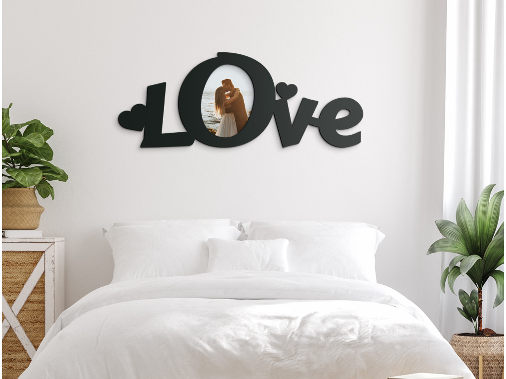 Der Fotorahmen besteht aus dem Wort "Love ", was "Liebe" bedeutet . Der Rahmen ist für Paare geeignet, die ein gemeinsames Foto an der Wand aufhängen möchten. Die Montage ist sehr einfach und kann von jedem durchgeführt werden.