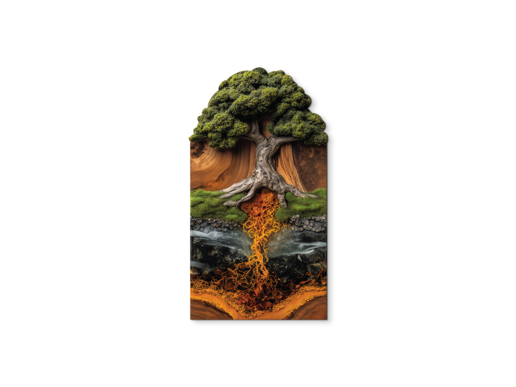 Der Baum des Lebens Neun Welten ist vom nordischen Yggdrasil inspiriert, dem heiligen Baum, der neun Welten verbindet. Seine tiefen Wurzeln und seine verzweigte Krone symbolisieren Festigkeit, Ewigkeit und die Verbundenheit allen Lebens.